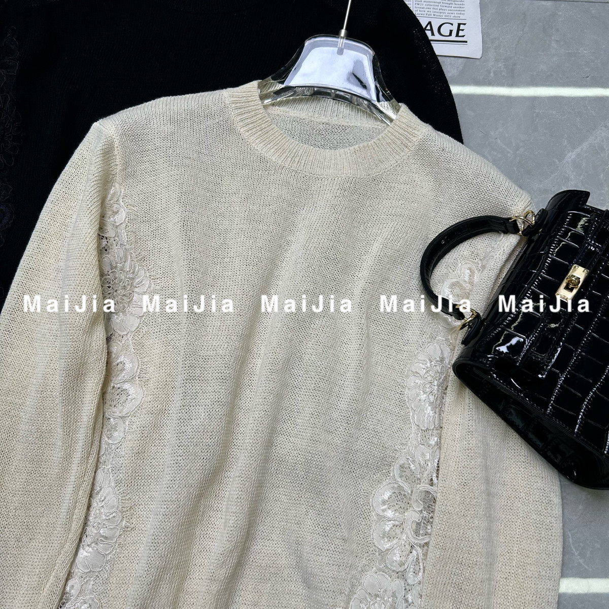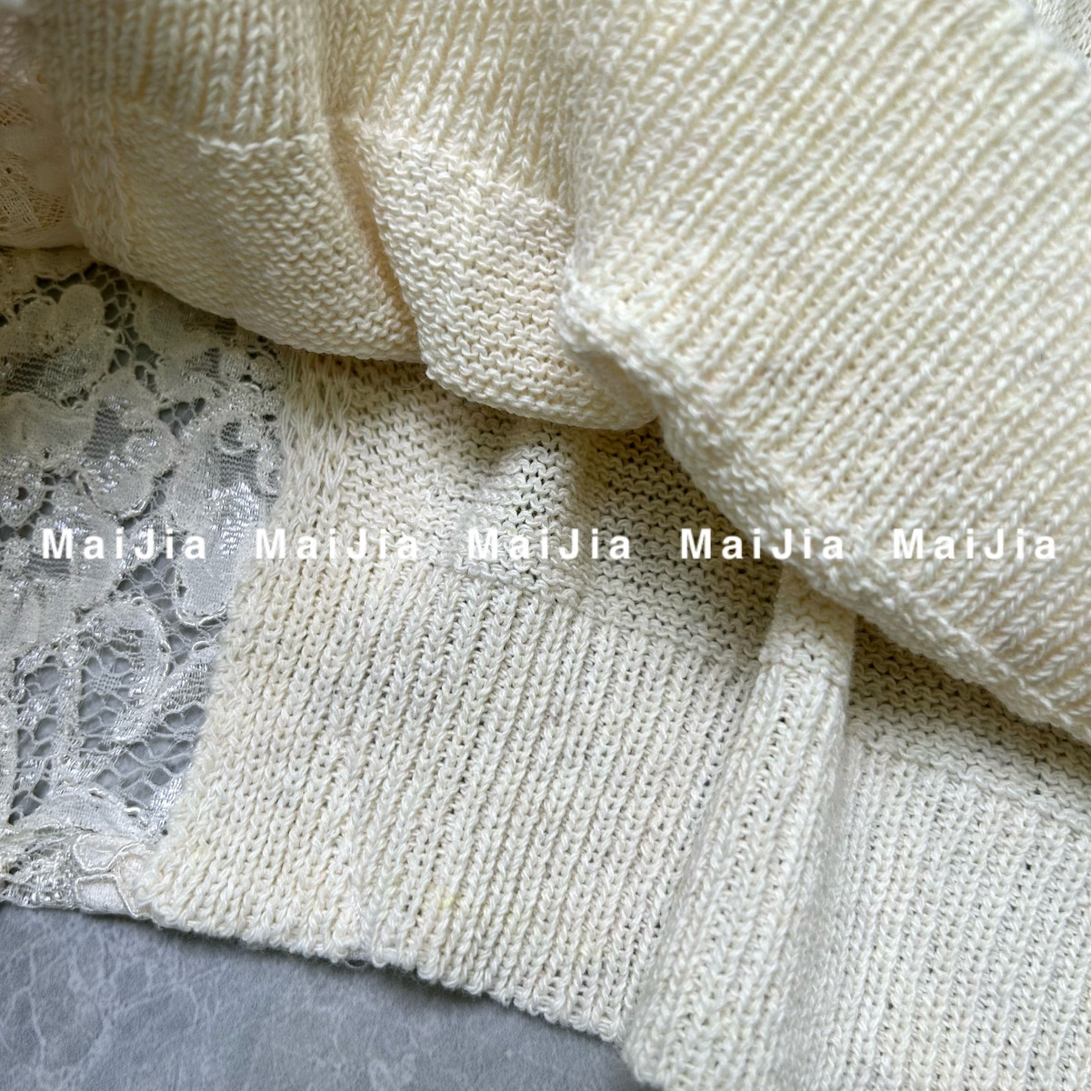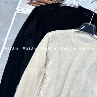 J745 小衫 瑞瑞小众设计夏上新慵懒风圆领蕾丝拼接薄款 针织衫