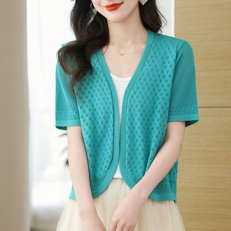 吊带裙子外搭披肩罩衫 镂空针织短袖 女夏季 襟外套薄款 小个子短 开