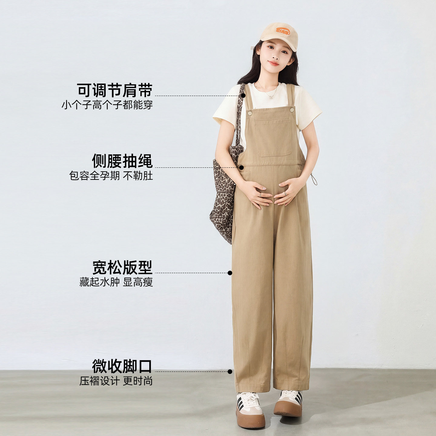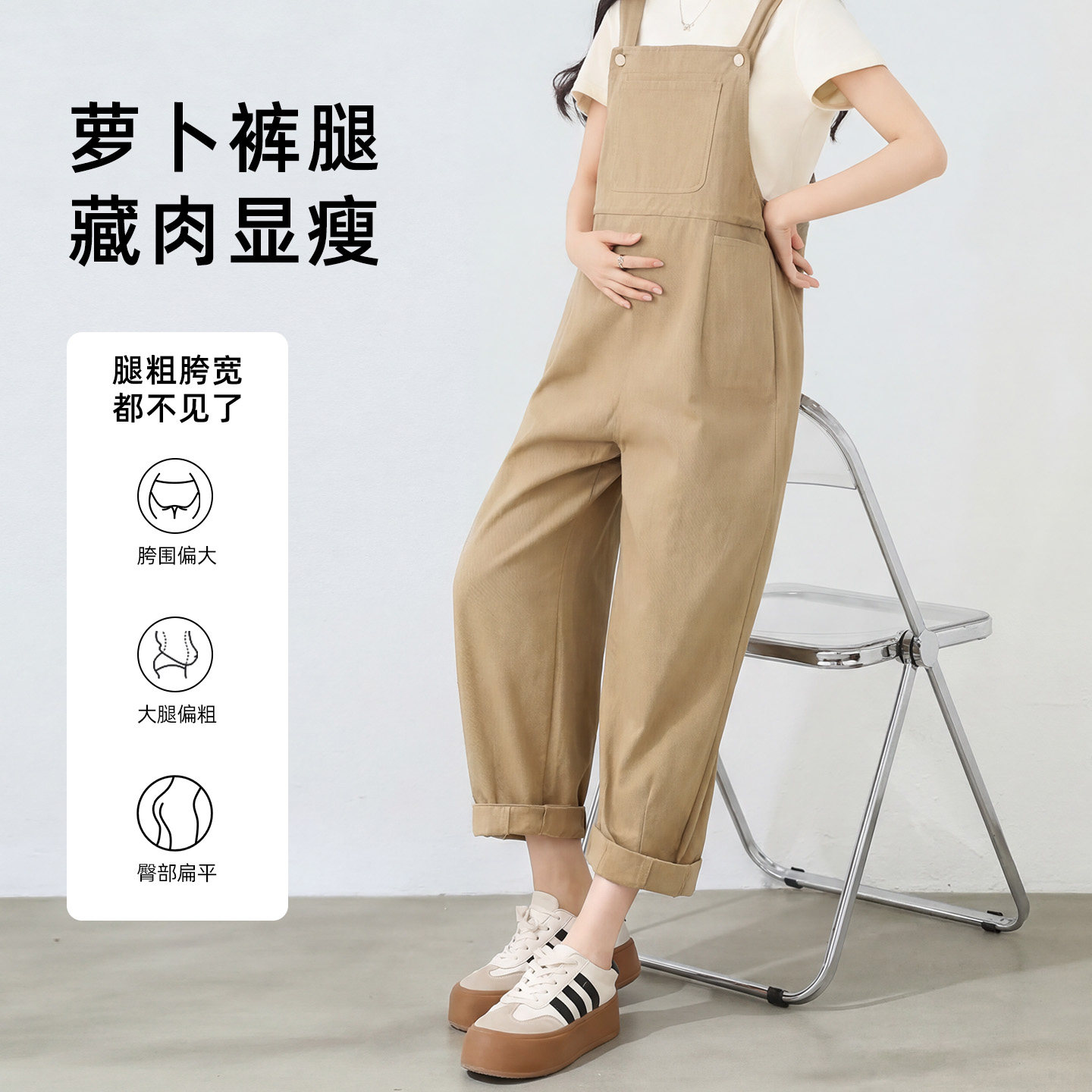 休闲宽松不显怀萝卜裤 孕妇背带裤 纯棉不勒肚子时尚 新款 2026春夏季