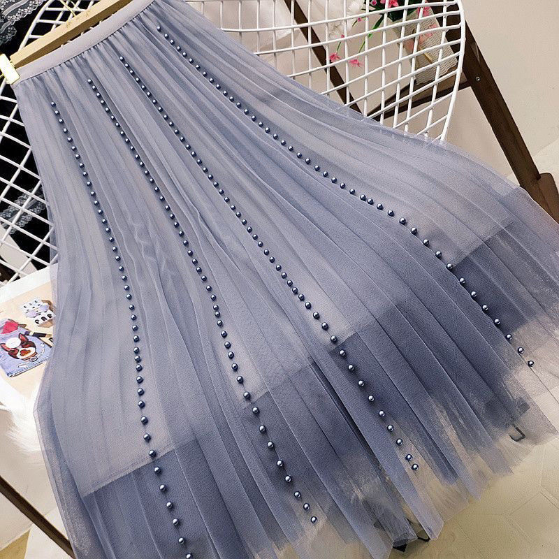 爆款 2026新款 A字裙子今年流行纱裙半身裙女夏季 黑色网纱显瘦长款