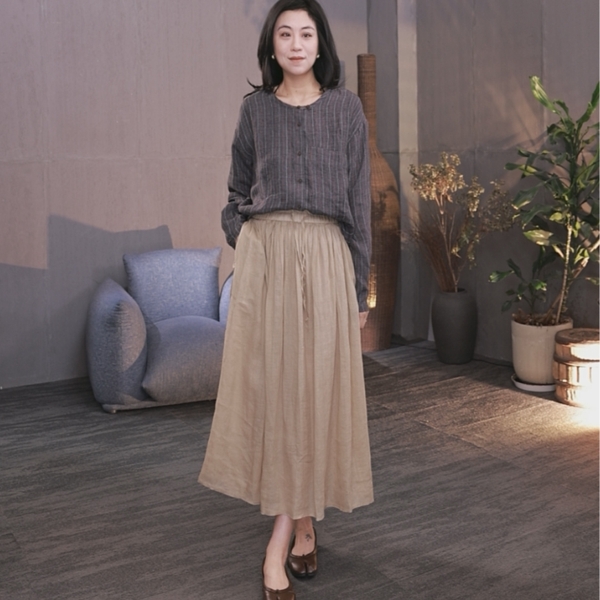 86A8813 百搭显瘦 东倪MF 文艺风宽松高腰双层半身裙春夏新款