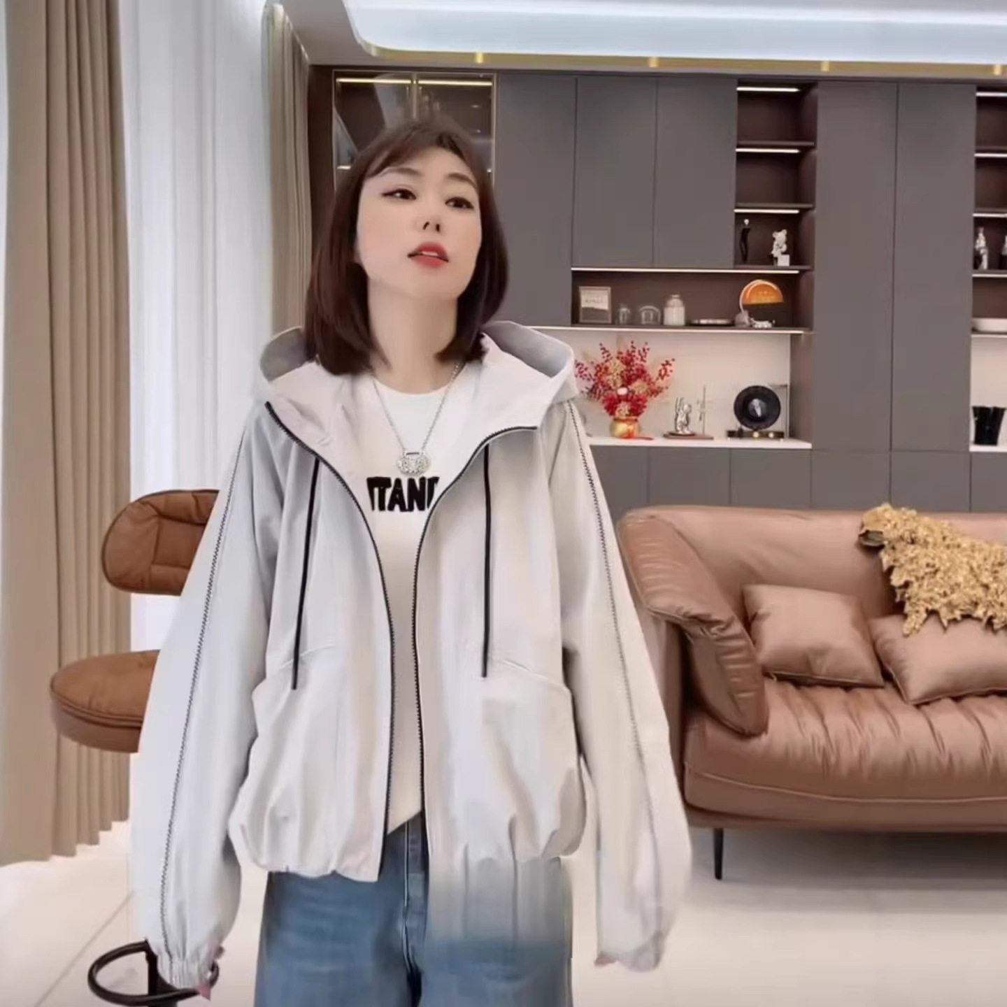 时尚 2026春季 休闲 高级感连帽冲锋衣短外套女装 今年流行特惠爆款