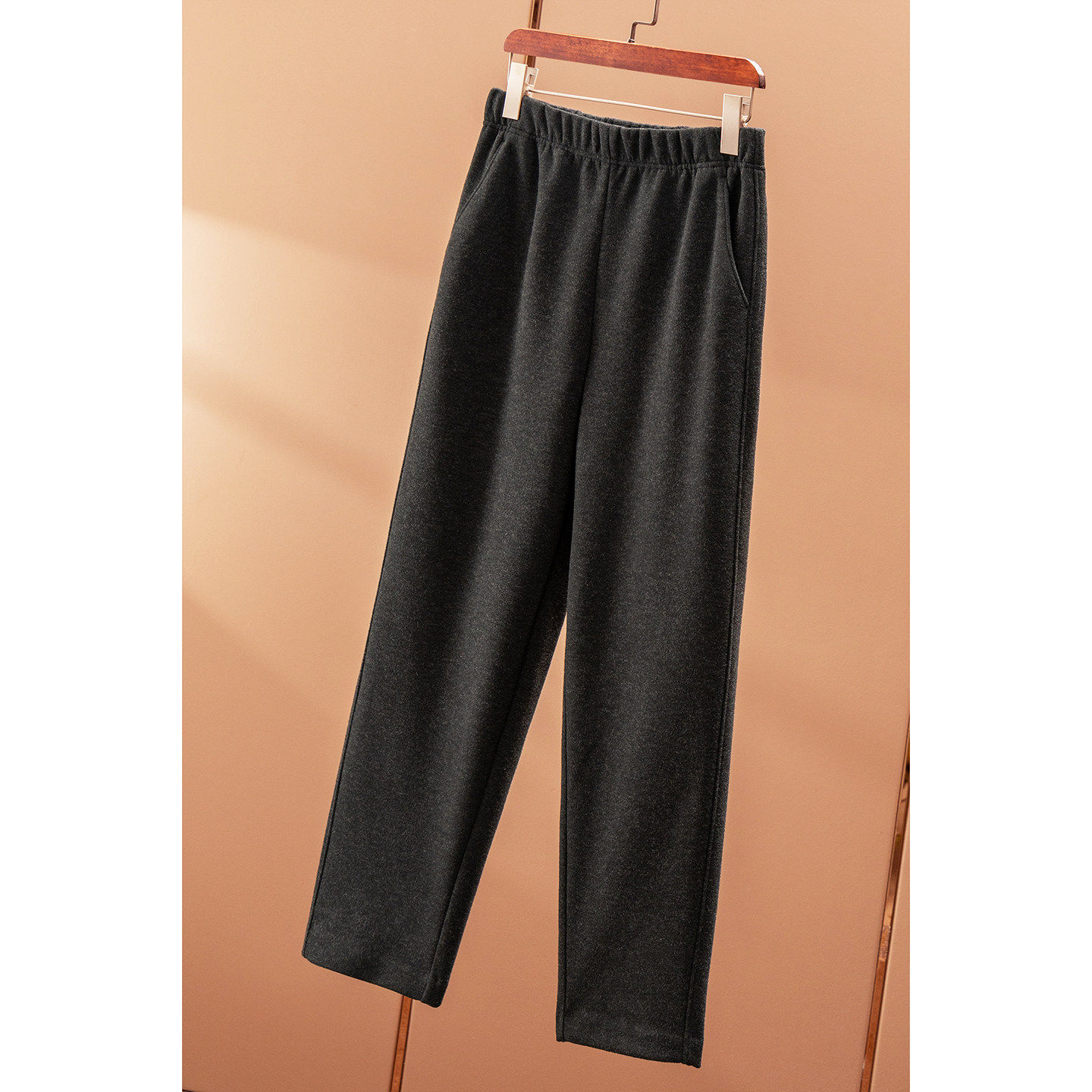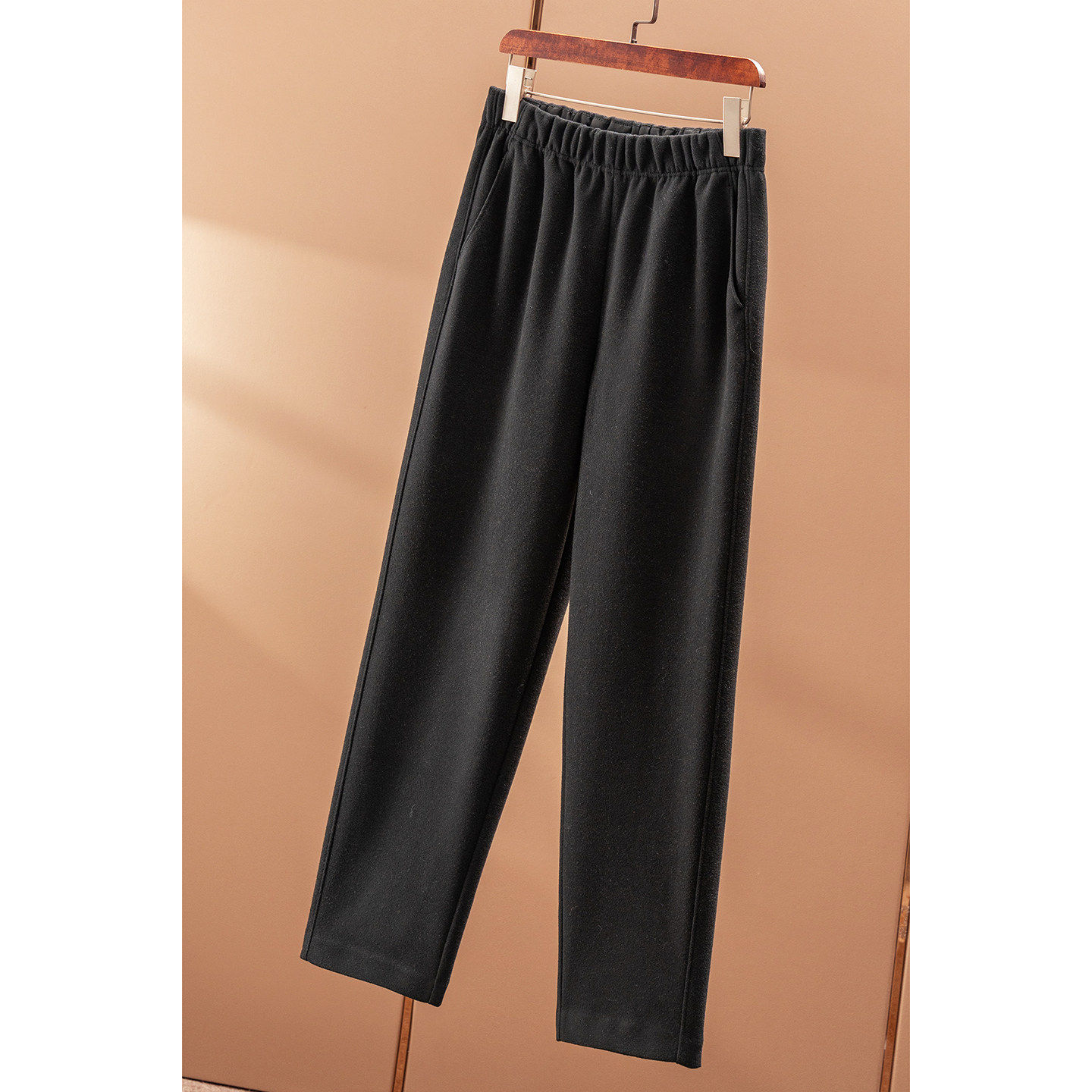 50F0 春天家通勤含羊毛醋酯松紧腰锥形直筒毛呢九分裤 ¥229 秒