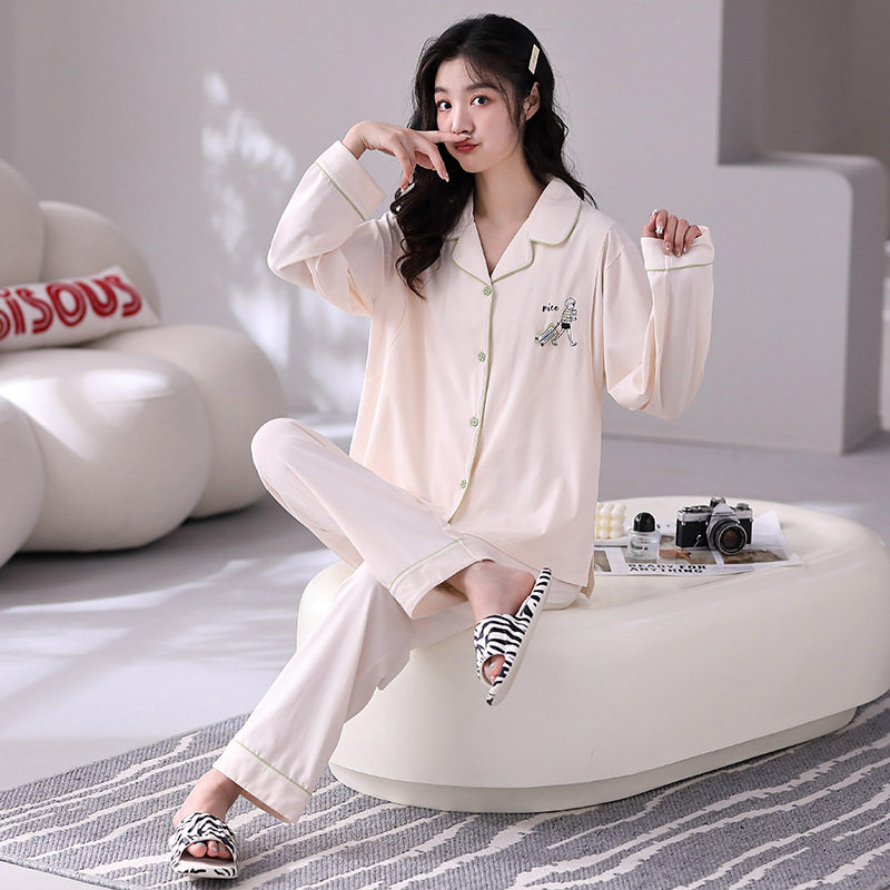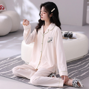 月子服翻领孕妇睡衣产后哺乳喂奶套装 家居服女透气可哺乳 薄款