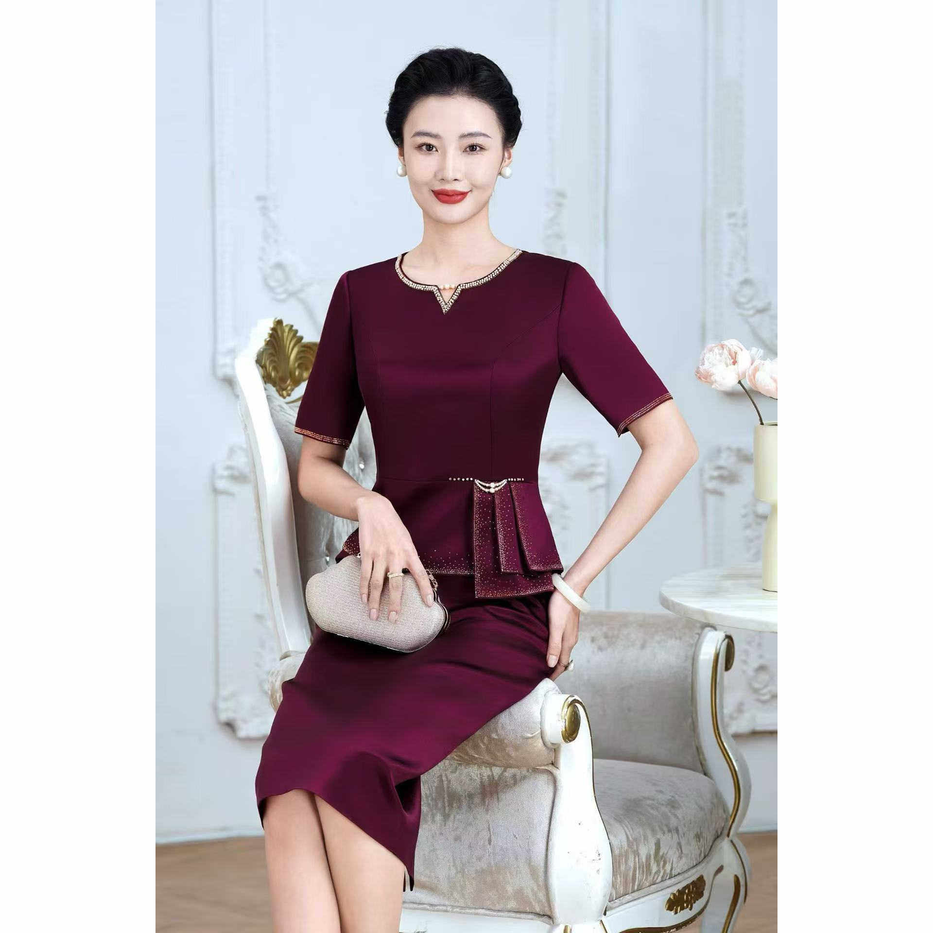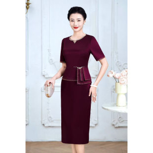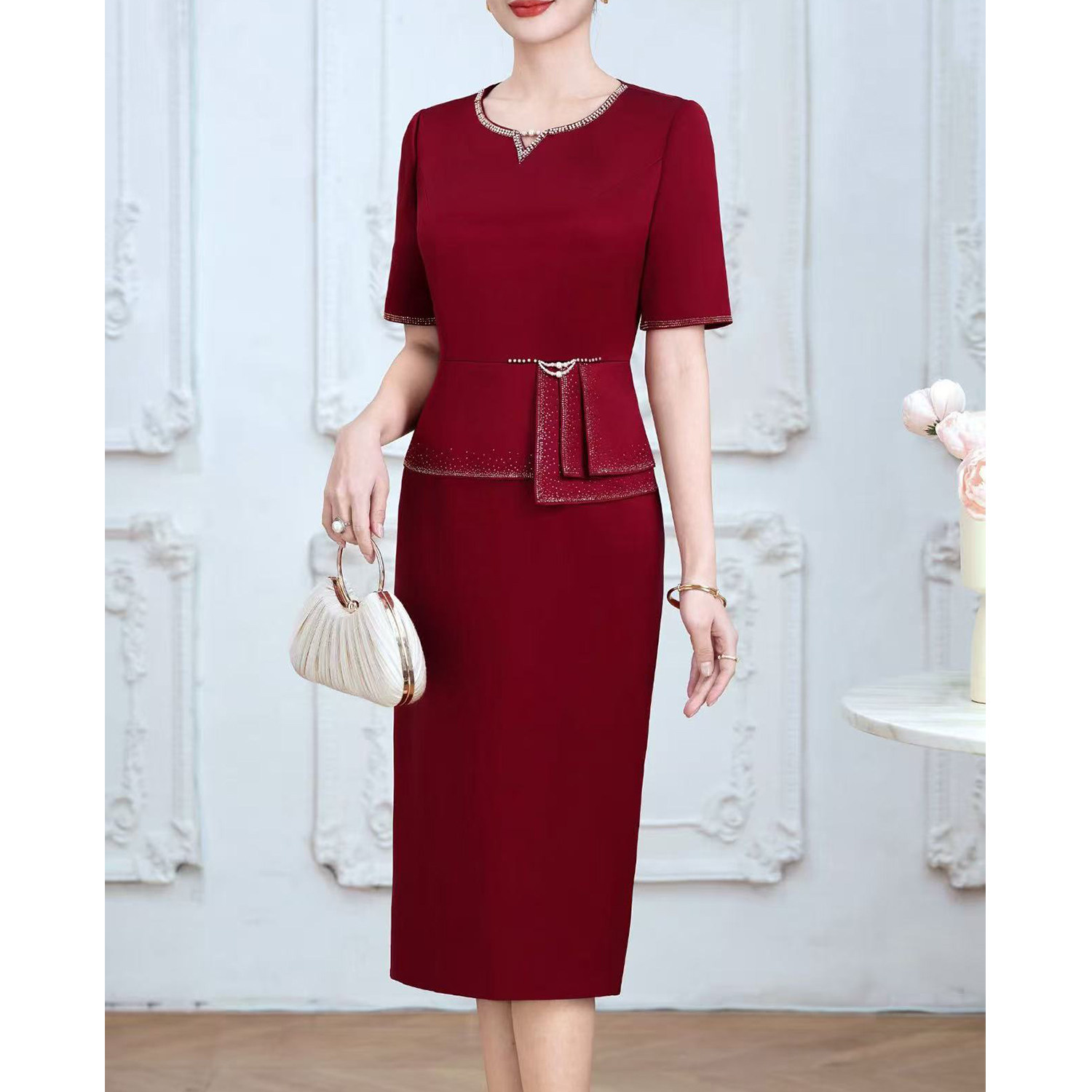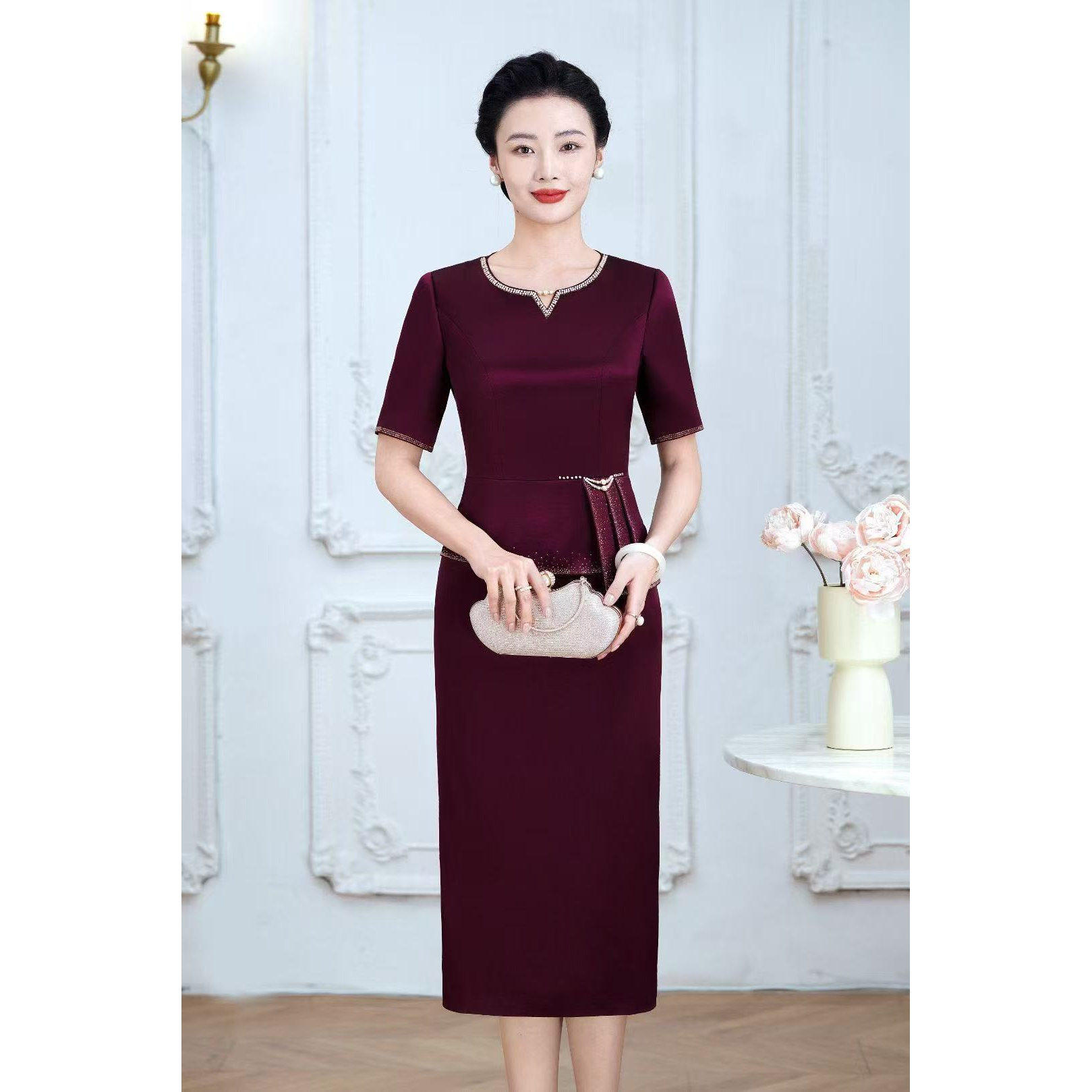 专柜2026春夏中袖 年轻妈妈喜婆婆高端醋酸礼服结婚宴会遮肚连衣裙