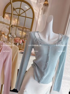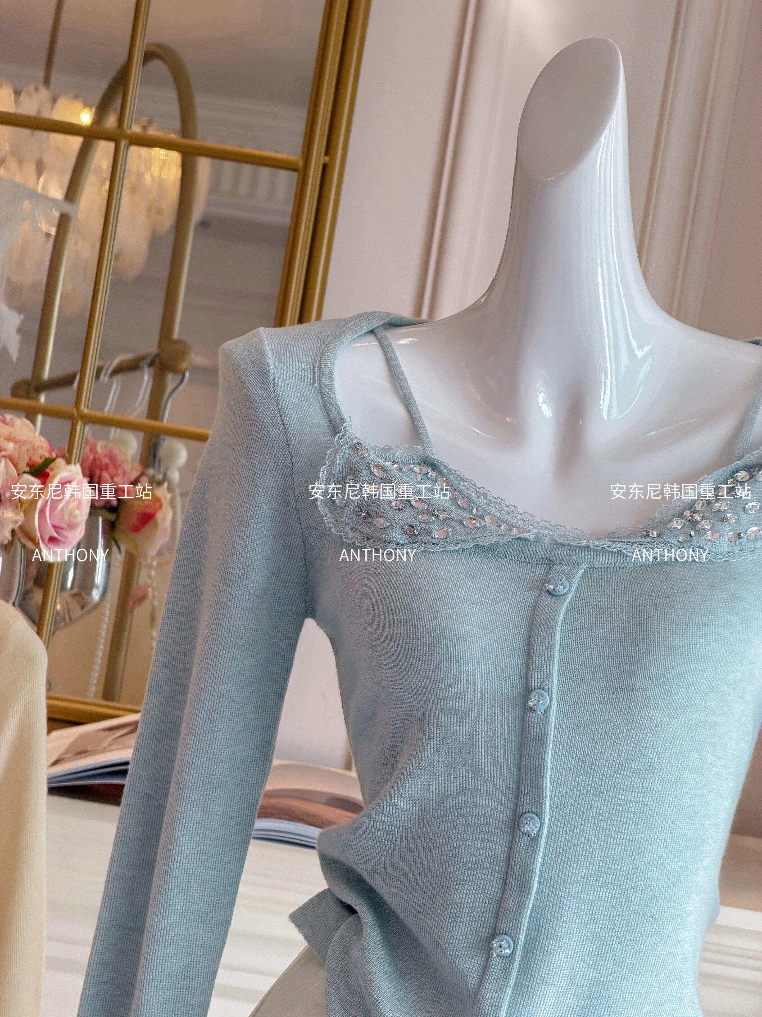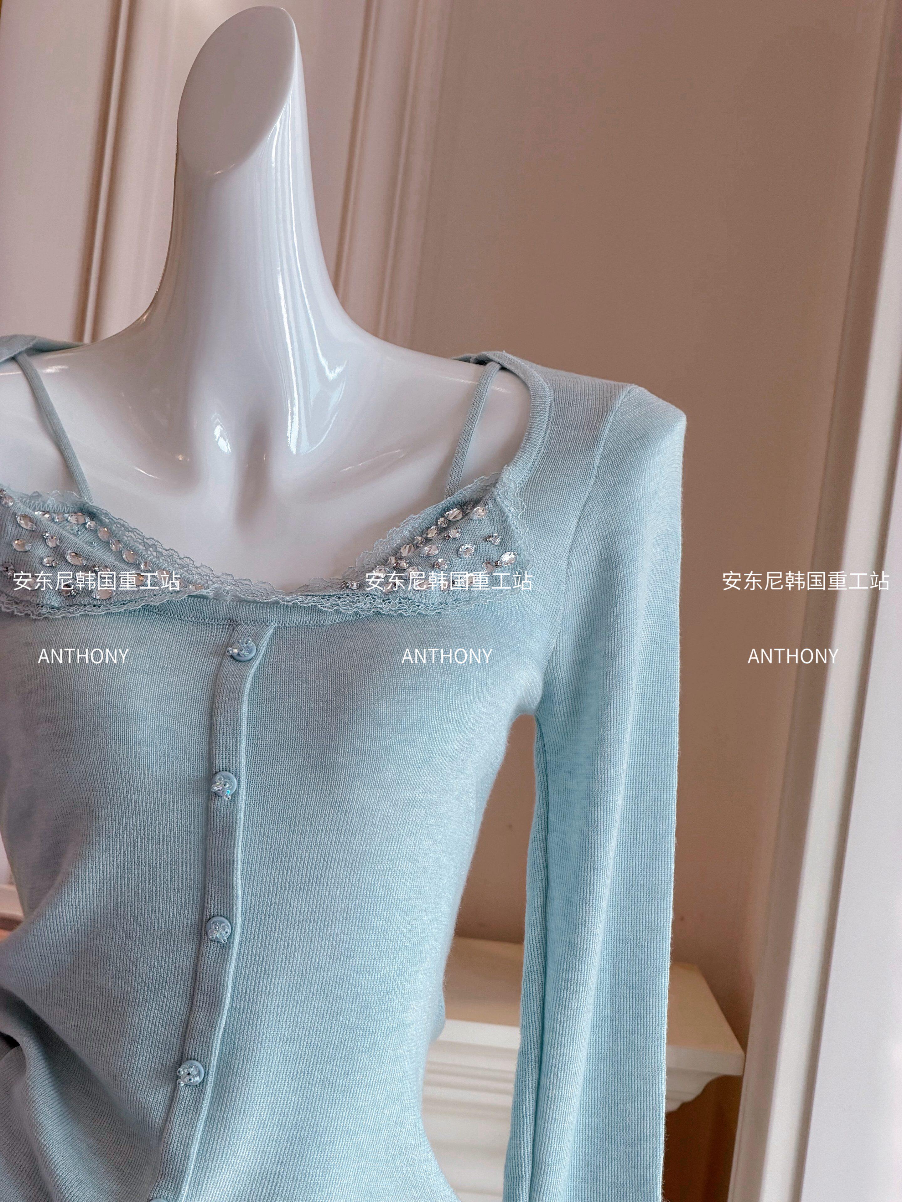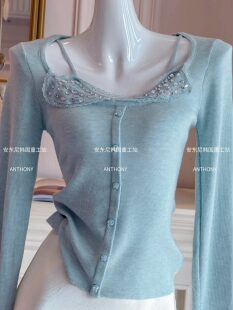 上衣女装 2026年春季 重工镶钻纯欲风气质甜美假两件宽松套头针织衫