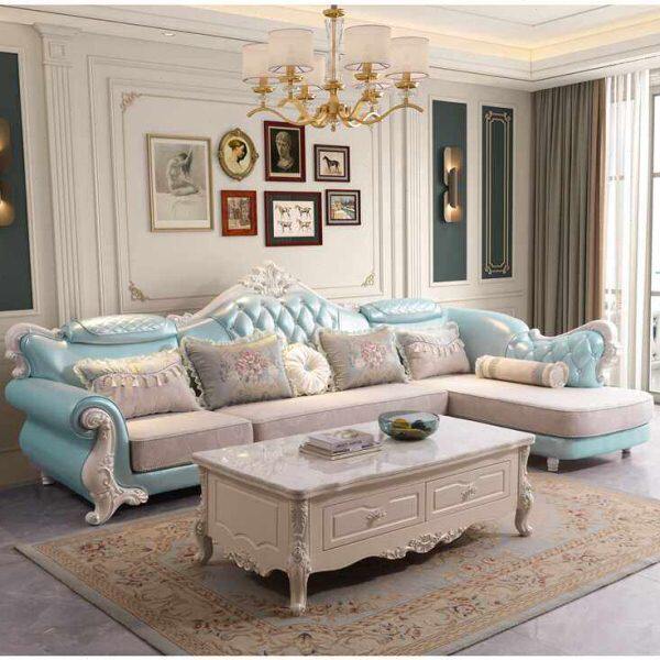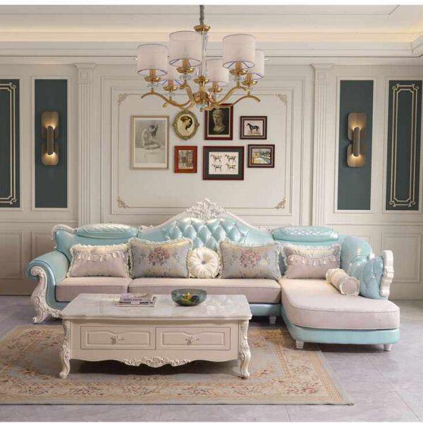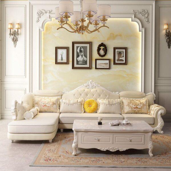 欧式 沙发组合雕花科技布沙发轻奢简欧皮布沙发大户型布艺客厅家具