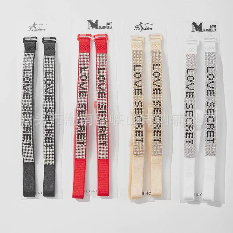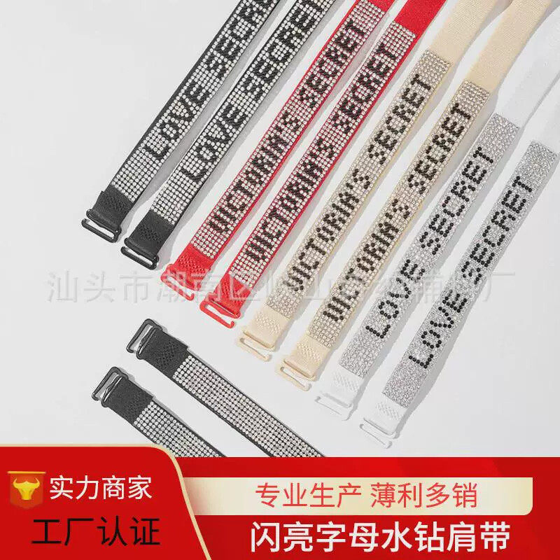 跨境新款 字母钻烫钻内衣肩带文胸防滑松紧带可拆卸可外罩带