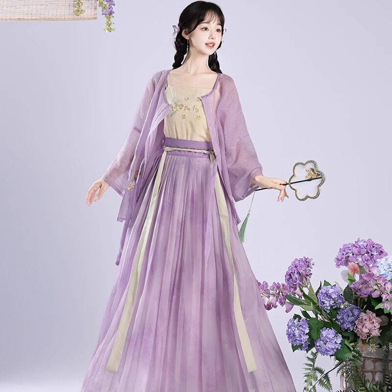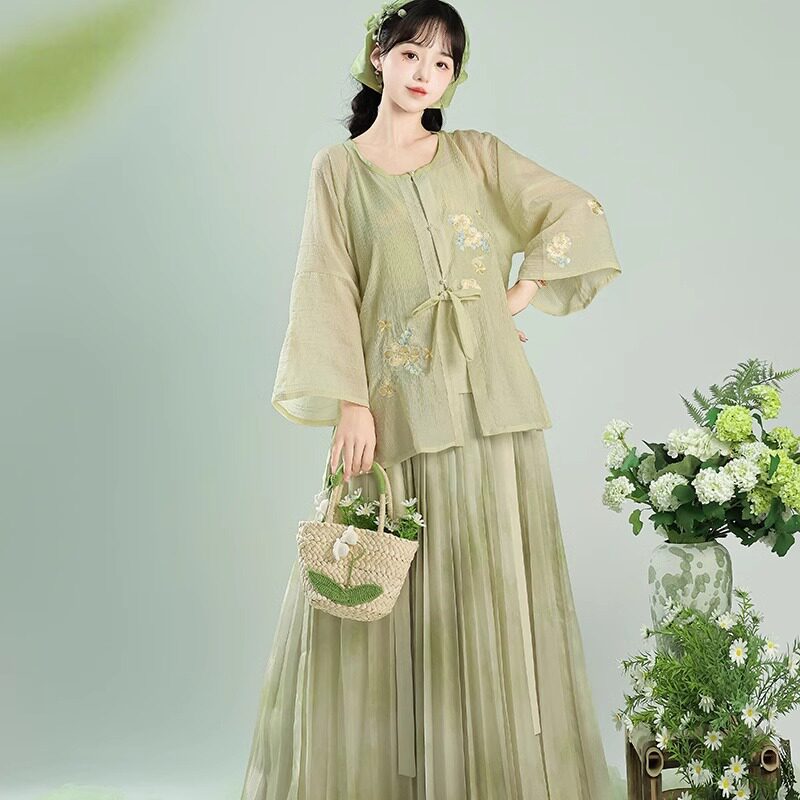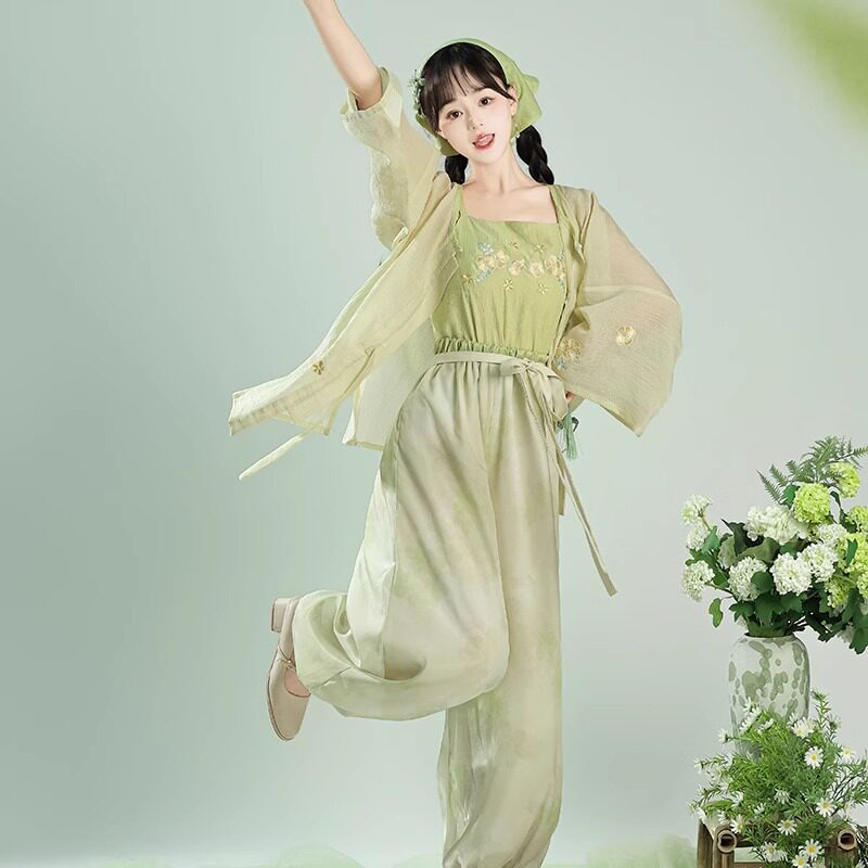 国风改良秋季 原创汉服女2026新款 新中式 百褶裙圆领短衫 宋制灯笼裤