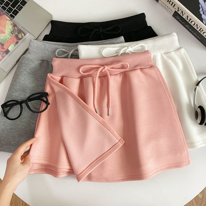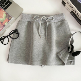 设计感简约百搭高腰抽绳显瘦侧开叉防走光A字半身裙短裙女春夏