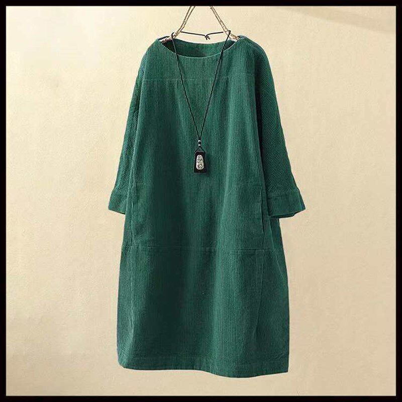 New Corduroy Dress and Loose Color Winter Solid Autumn Retro