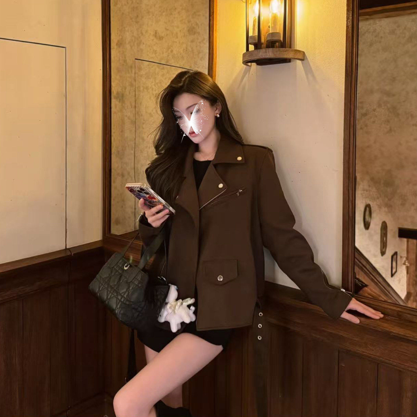 机车皮衣外套气质时髦感夹克上衣 博西雅之约 蜜蜂欢乐社