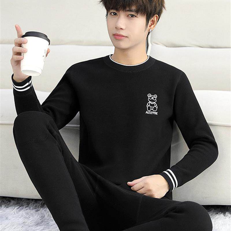男加绒加厚青少年防寒棉秋衣秋裤 冬季 大童初中学生保暖内衣套装