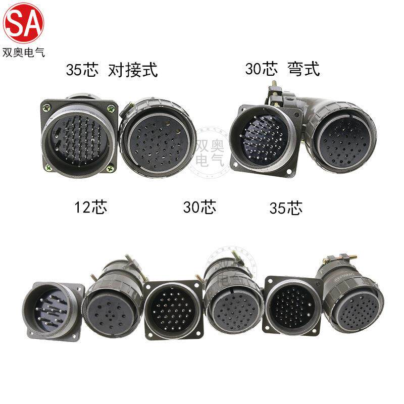 对接开孔55MM 弯式 圆形航空插头P5530芯35芯连接器正装 反装