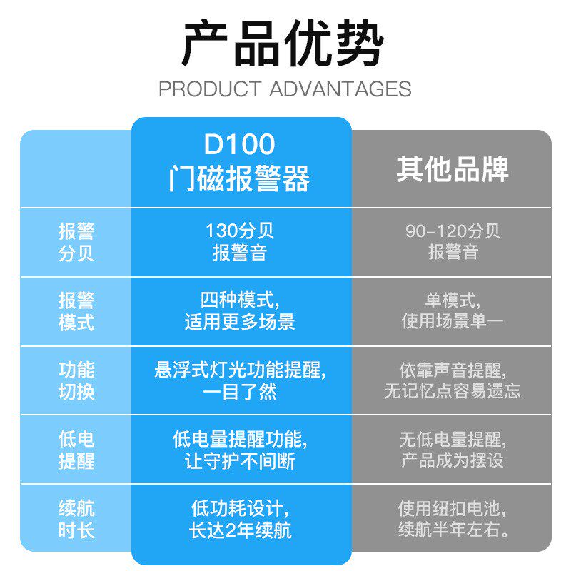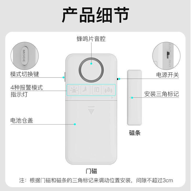 跨境130分贝门窗报警器家用门店无线门磁报警器多功能防盗报警器