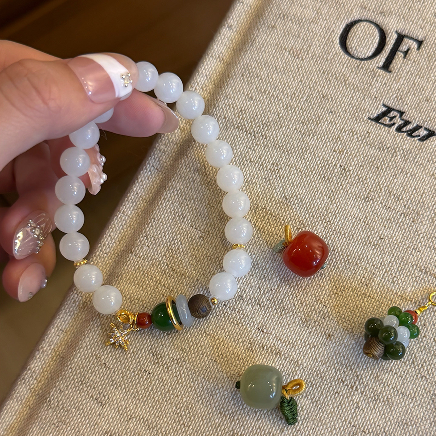 庆祥泰真品朱砂手串女款 官方旗舰店天然和田玉足金黄金手链女 正品