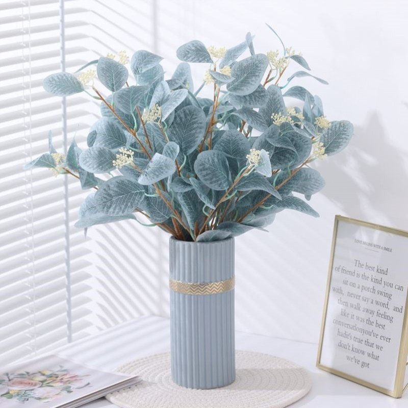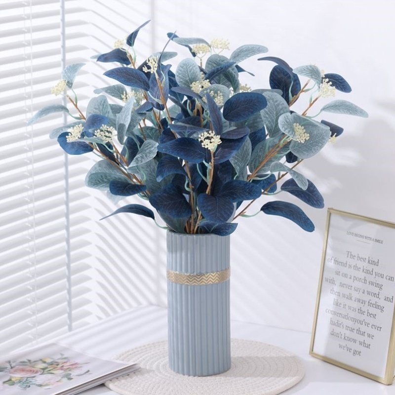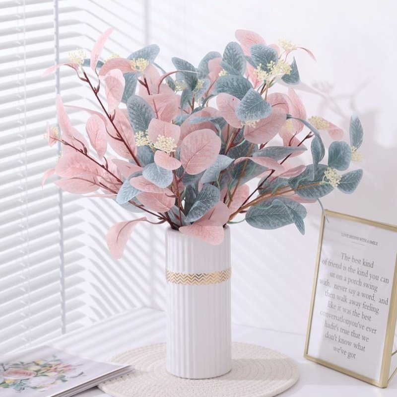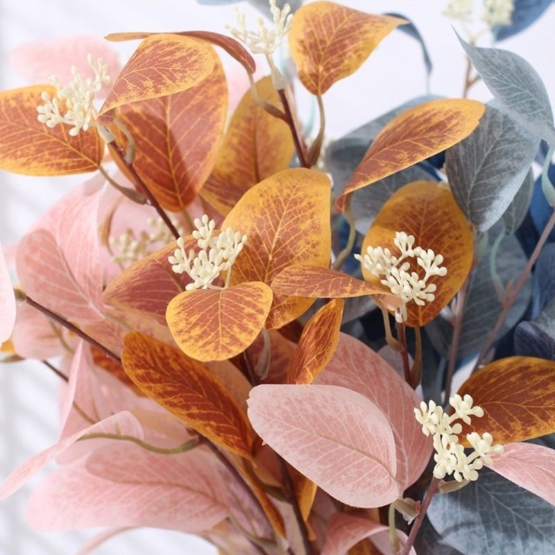 仿真花假花彩色桉树叶尤加利室内北欧家居客厅餐桌面装 饰摆件摆设