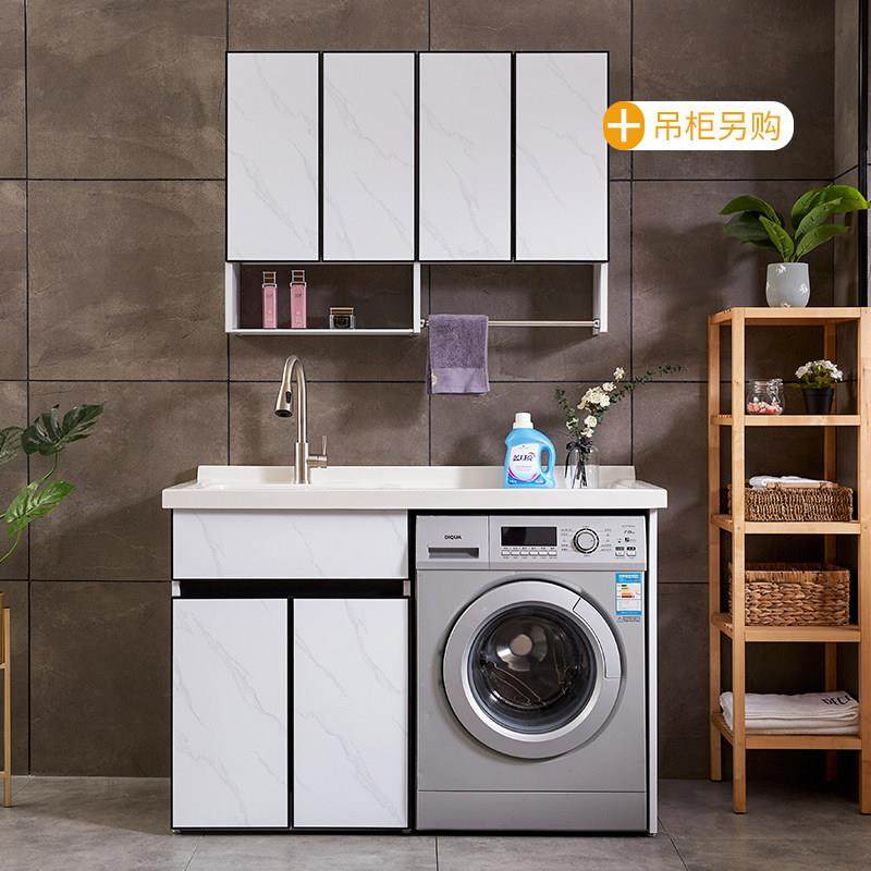 太空铝洗衣机柜子阳台组合定制搓衣板滚筒洗脸洗手池台盆一体伴侣