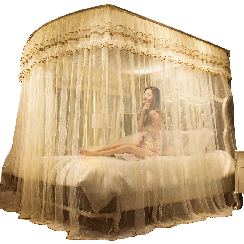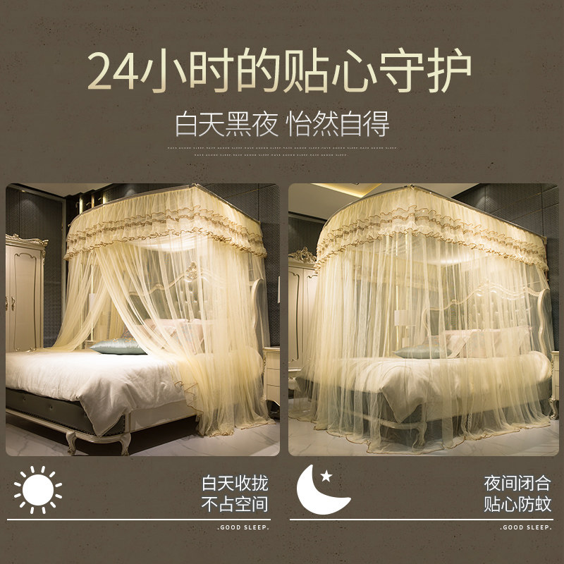 新款 蚊帐1.8米1.0m支架1.2m1.5米家用纹帐三开门卧室落地加粗防蚊
