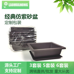 亚马逊正方长方形仿紫砂花盆 多肉花盆 盆景盆小盆栽塑料花盆