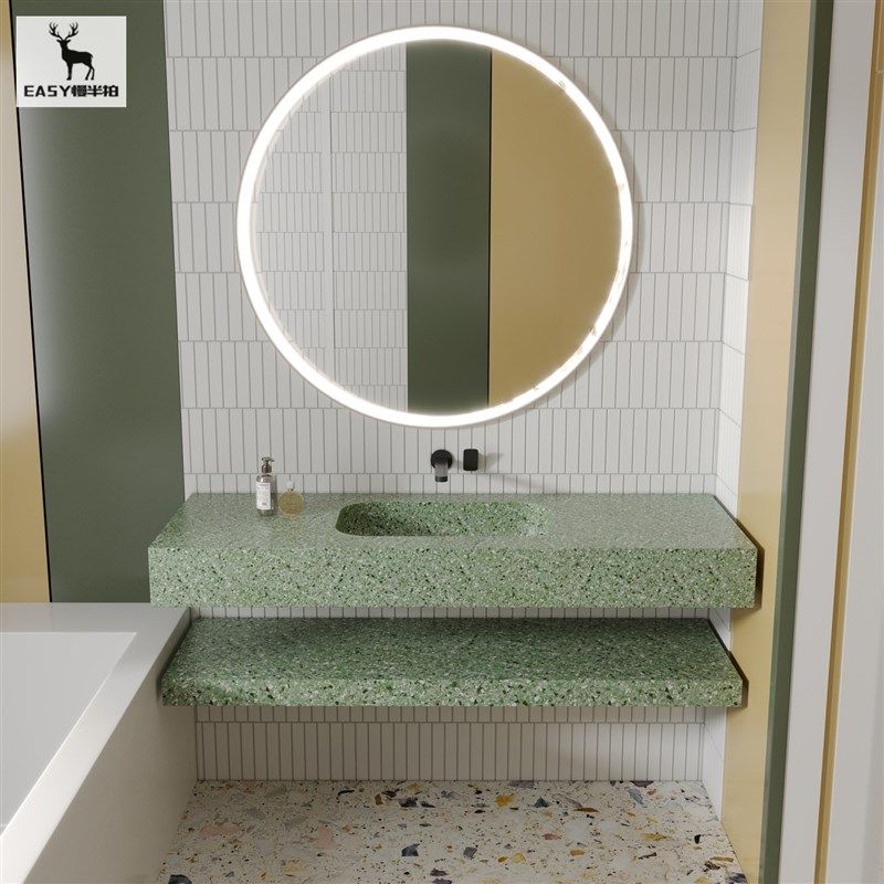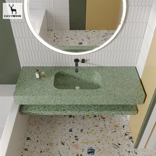 果绿色水磨石一体成型式 台盆洗脸盆洗手池洗漱台酒店民宿浴室水池