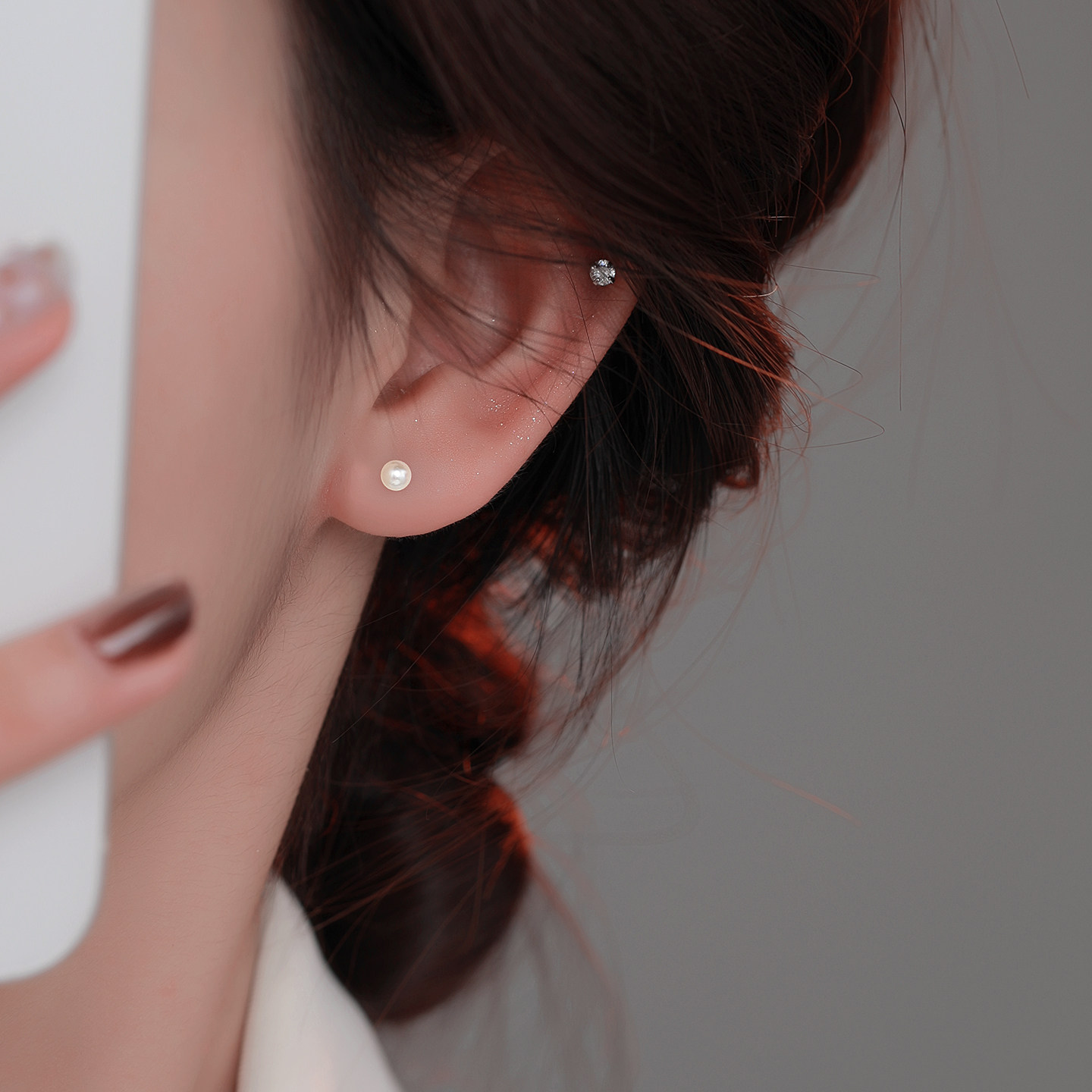 医用钛钢钛合金珍珠耳钉女双耳洞螺丝拧扣耳骨钉养耳洞耳蜗钉耳饰