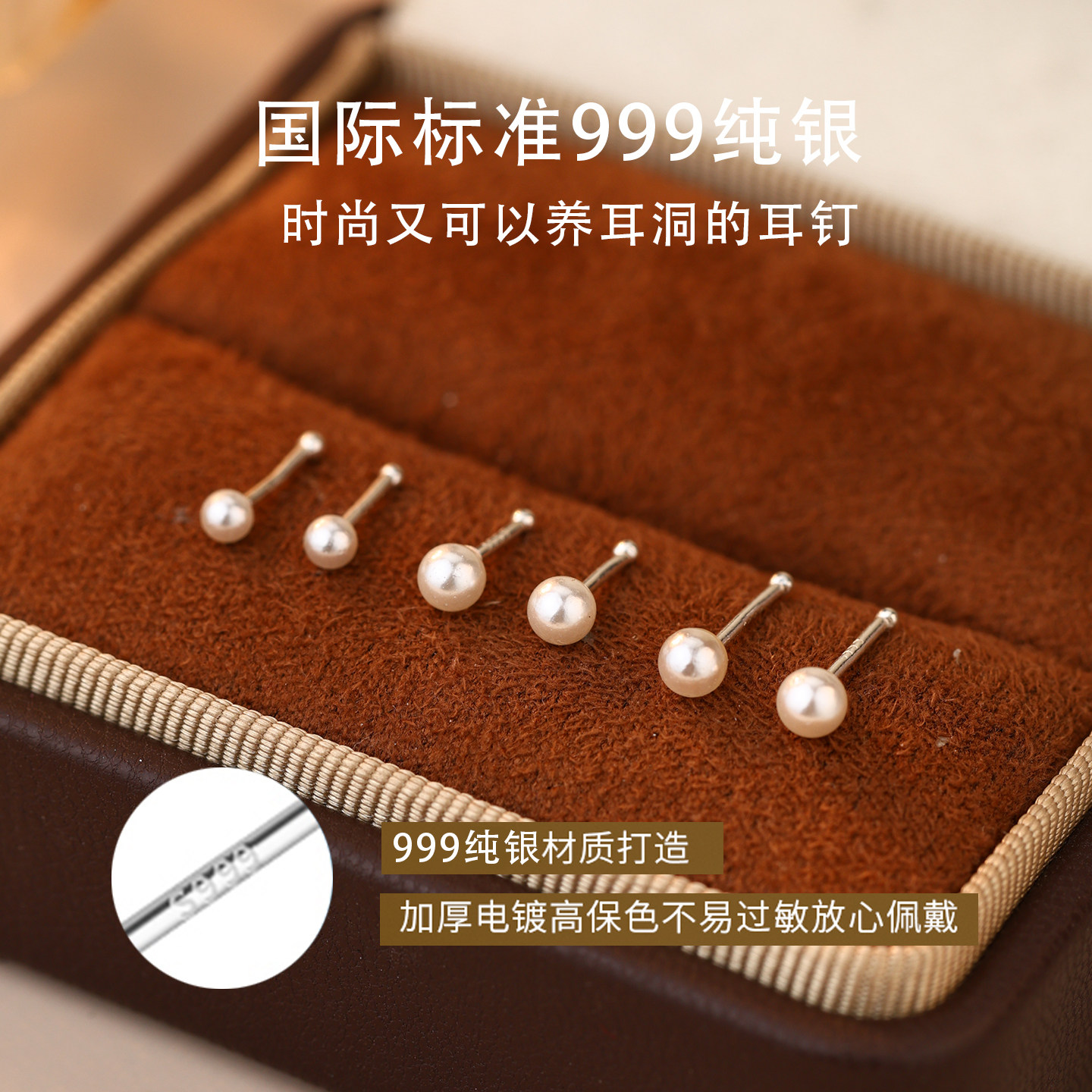 珍珠耳钉女士纯银999纯银耳钉新款 大澳白珍珠耳钉珍珠耳环女耳饰