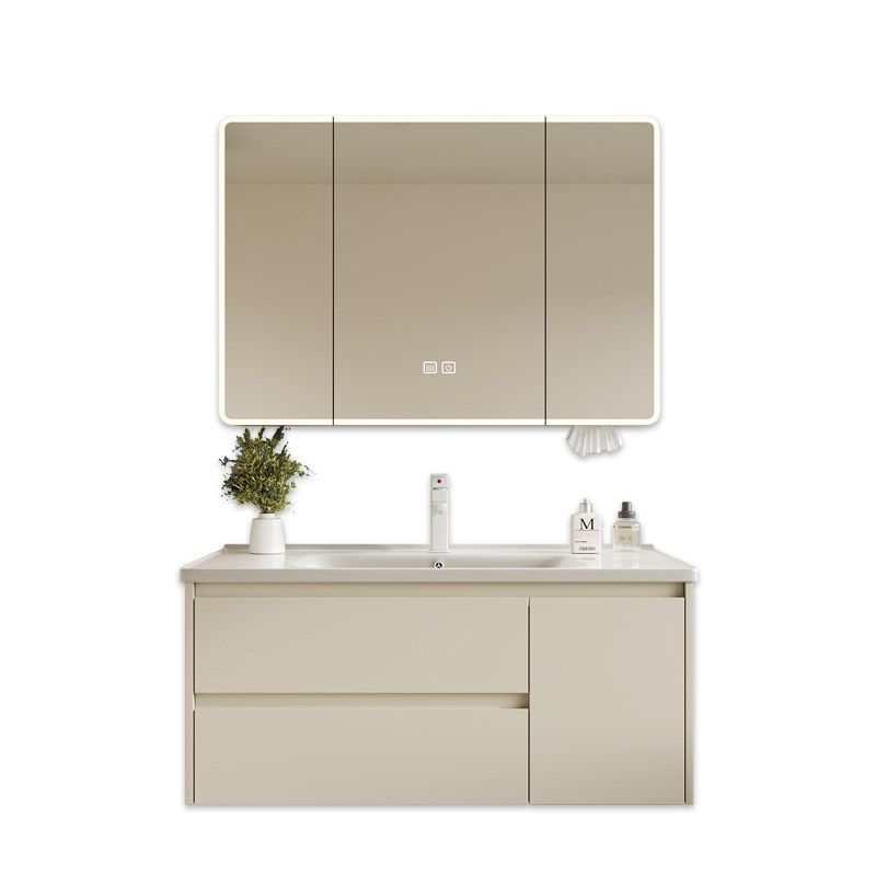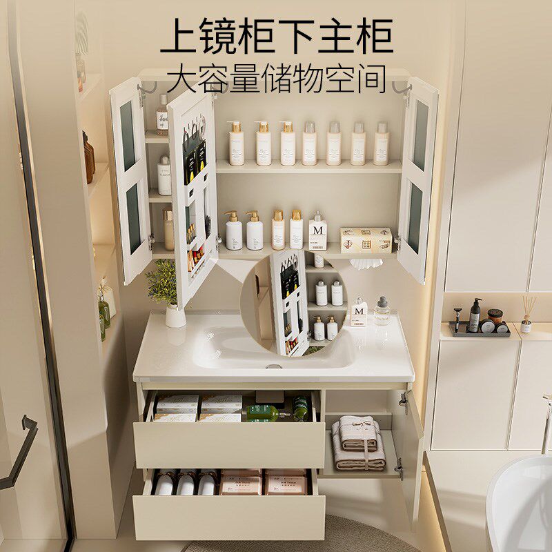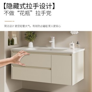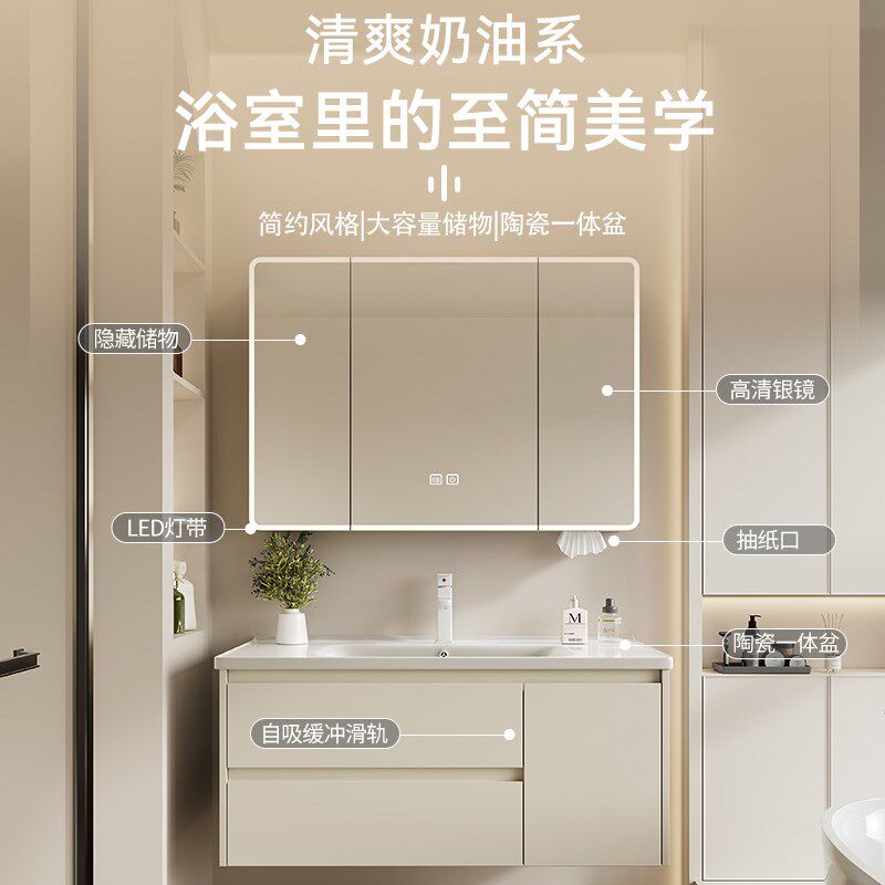 奶油风不锈钢智能浴室柜陶瓷一体盆洗手洗脸盆柜组合卫生间洗漱台