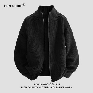 立领开衫 外套男女款 毛衣男士 宽松慵懒风针织衫 美式 ponchioe秋冬季