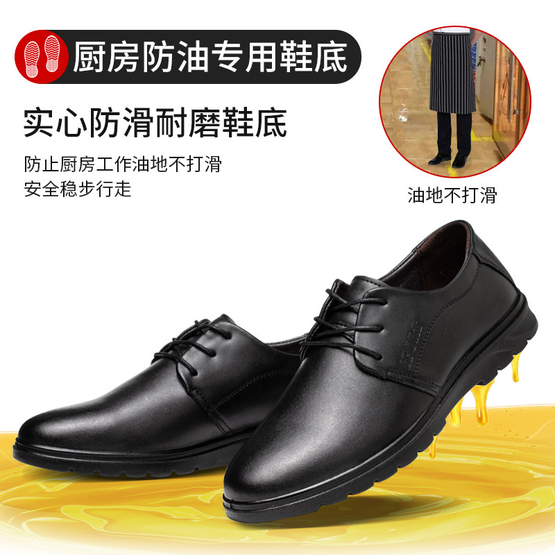 男鞋 专用工作鞋 防滑防水防油厨房鞋 休闲皮鞋 上班耐磨厨工鞋 厨师鞋