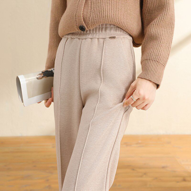 女加绒休闲直筒裤 人字纹羊毛呢裤 阔腿裤 高腰窄版 子女秋冬2024新款