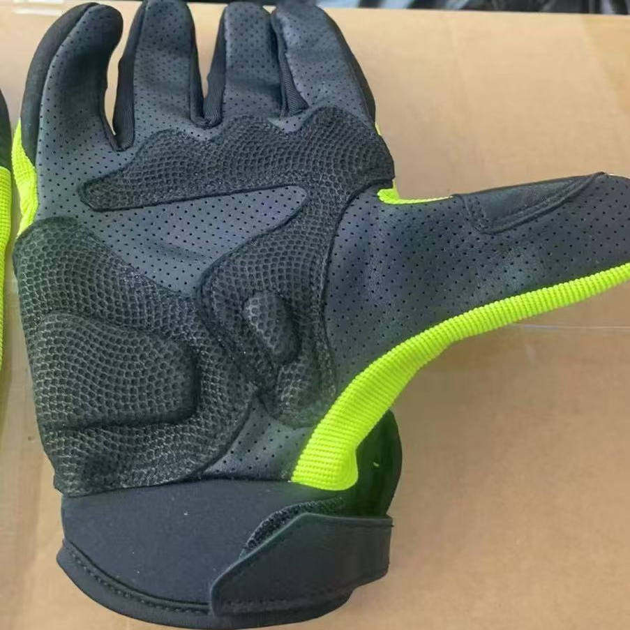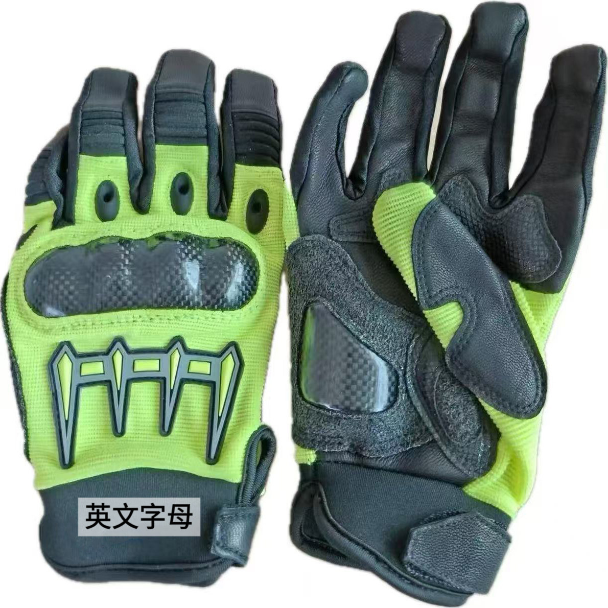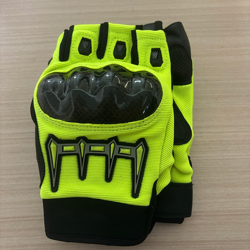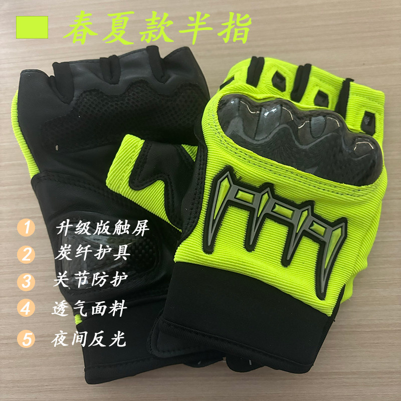 铁骑同款 户外摩托车手套碳纤维防护牛皮骑行荧光绿反光标全指手套