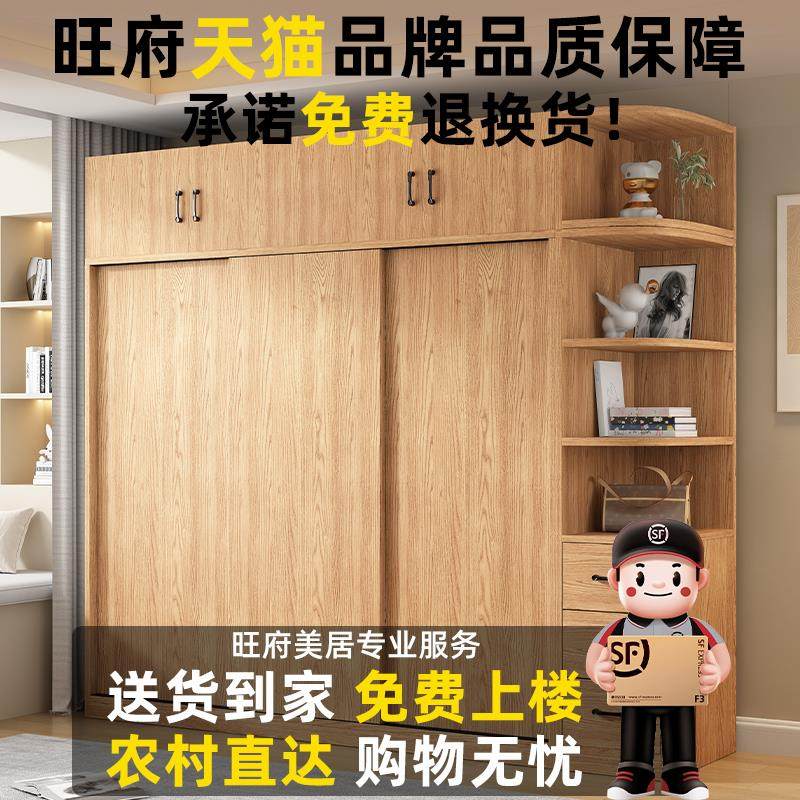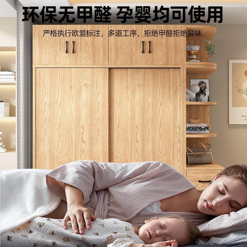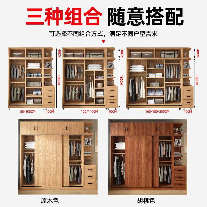 衣柜家用卧室推拉门实木衣橱原木小户型移门收纳柜出租房儿童柜子