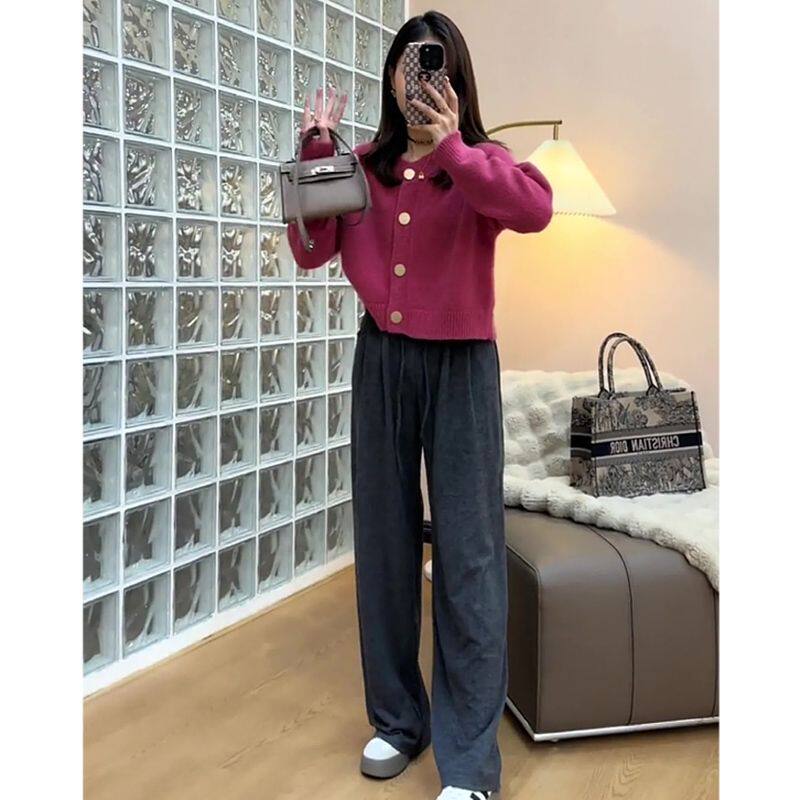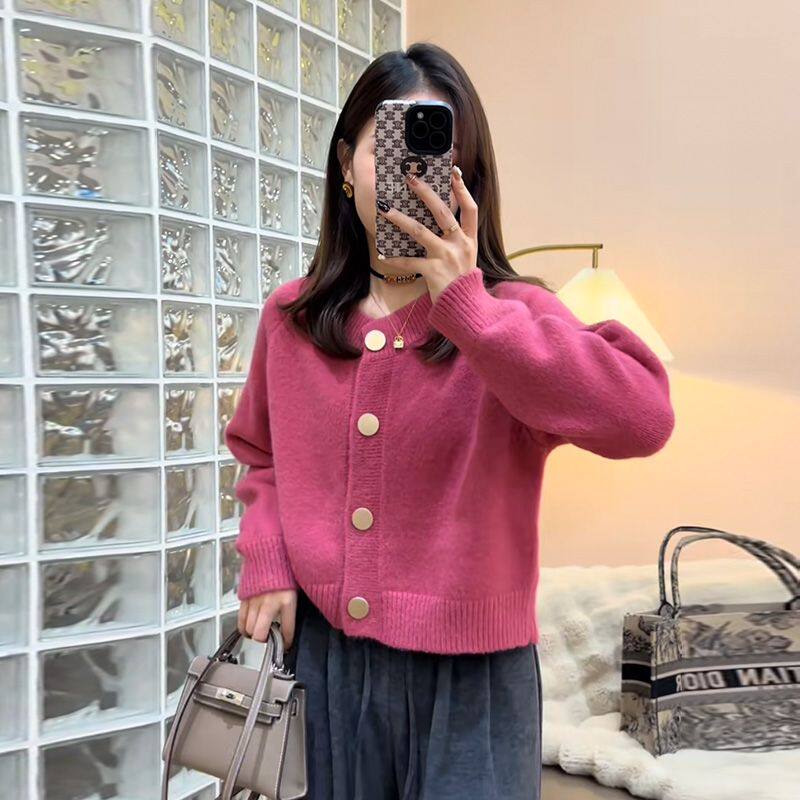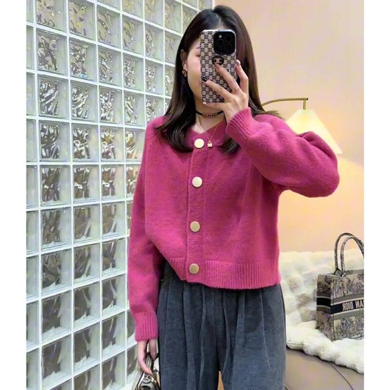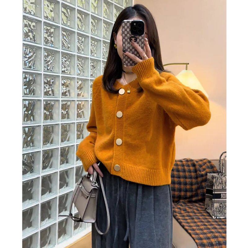 晨领慵懒风纯色长袖 秋冬针织外套显瘦上衣洋气 毛衣小香风新款