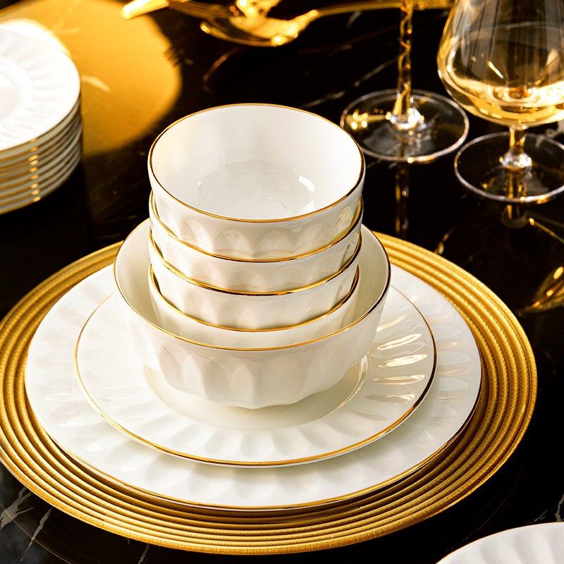 速发景德镇酒店套所餐具高档釉下彩瓷盘乔迁金边骨碗碗碟会装 家用