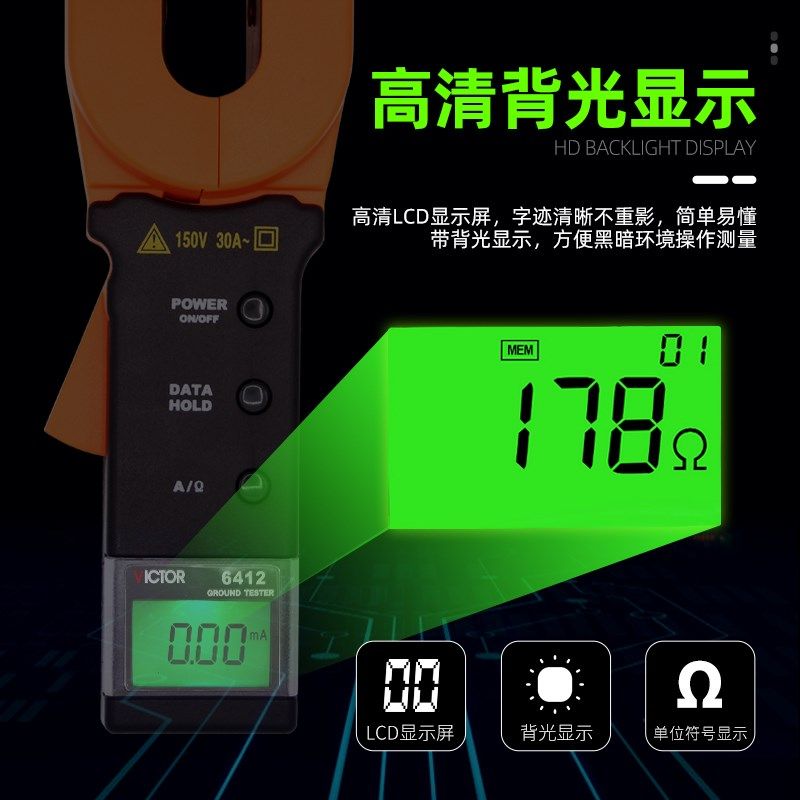 胜利钳形接地电阻测试仪数字高精度地阻测试仪防雷电阻仪VC6412