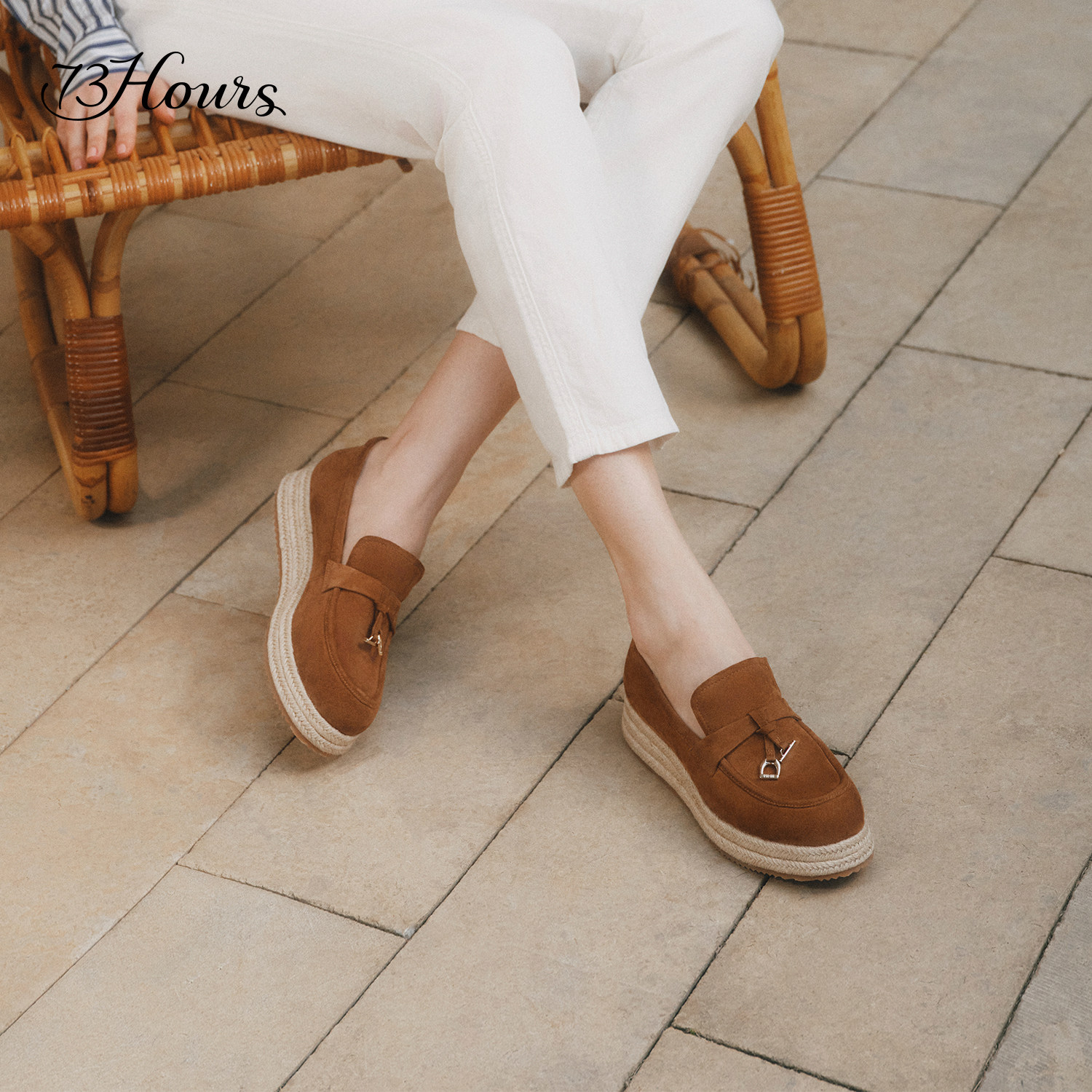 女乐福鞋 73hours女鞋 厚底增高草编渔夫鞋 新款 假日进行时2026春季