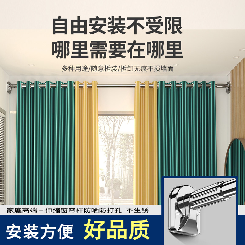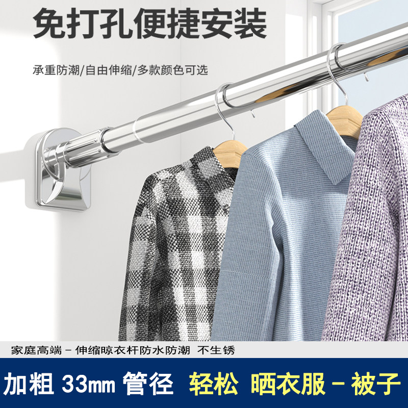 免打孔伸缩杆晾衣杆阳台凉衣架室内窗帘杆不锈钢晒衣杆卫生间浴帘