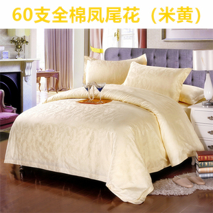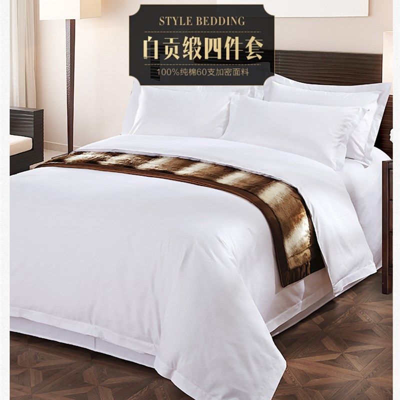 星级酒店宾馆三四件套60支全棉白色贡缎提花床上用品被套床单 包邮