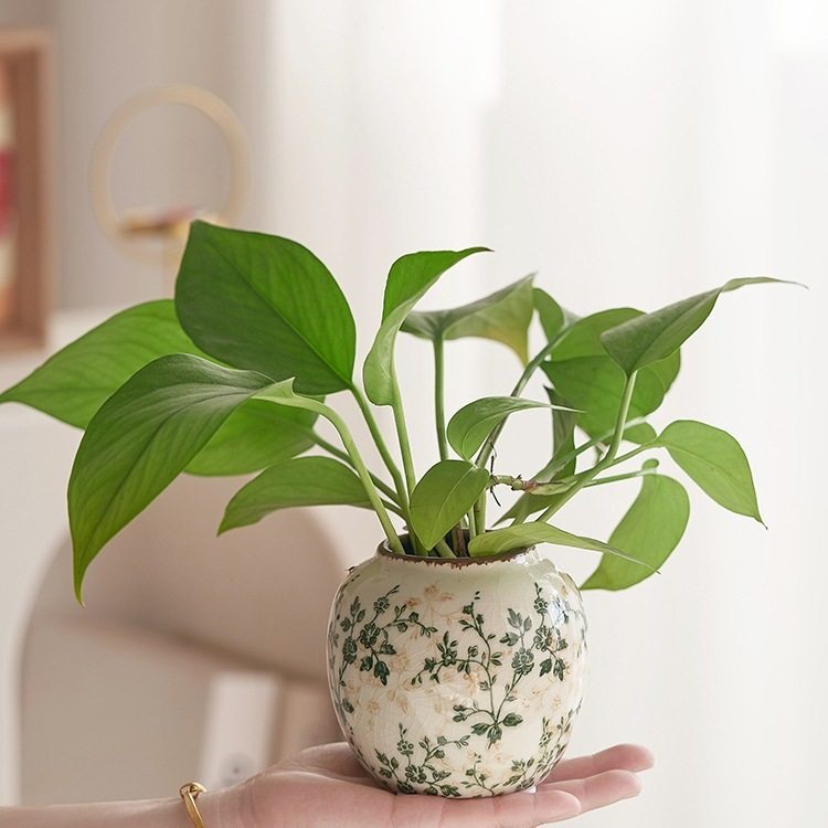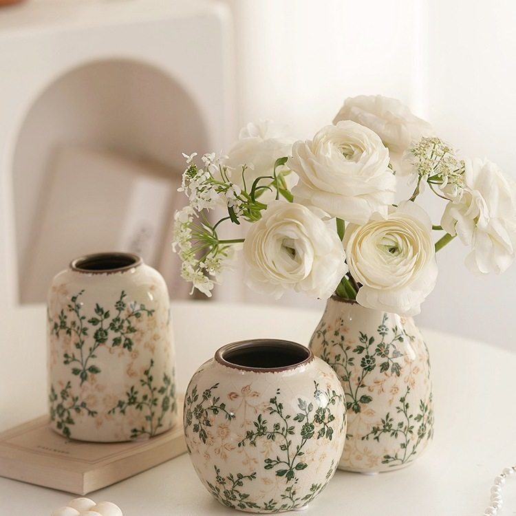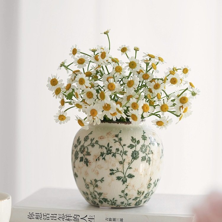 田园复古绿萝小花瓶陶瓷繁花冰裂纹新中式 饰 摆件客厅书房办公桌装