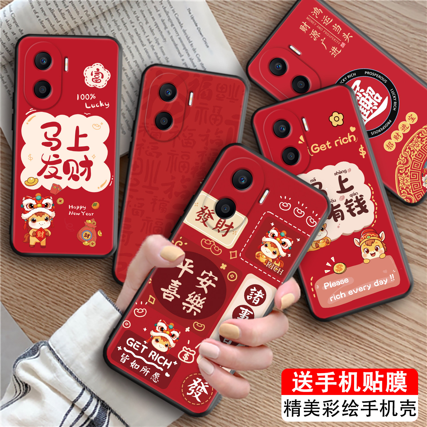 素荣耀x40i文字艺术 an00马元 luckrider适用于华为荣耀x40i手机壳荣耀play7tpro卡通图案DIO AN00招财进宝dio