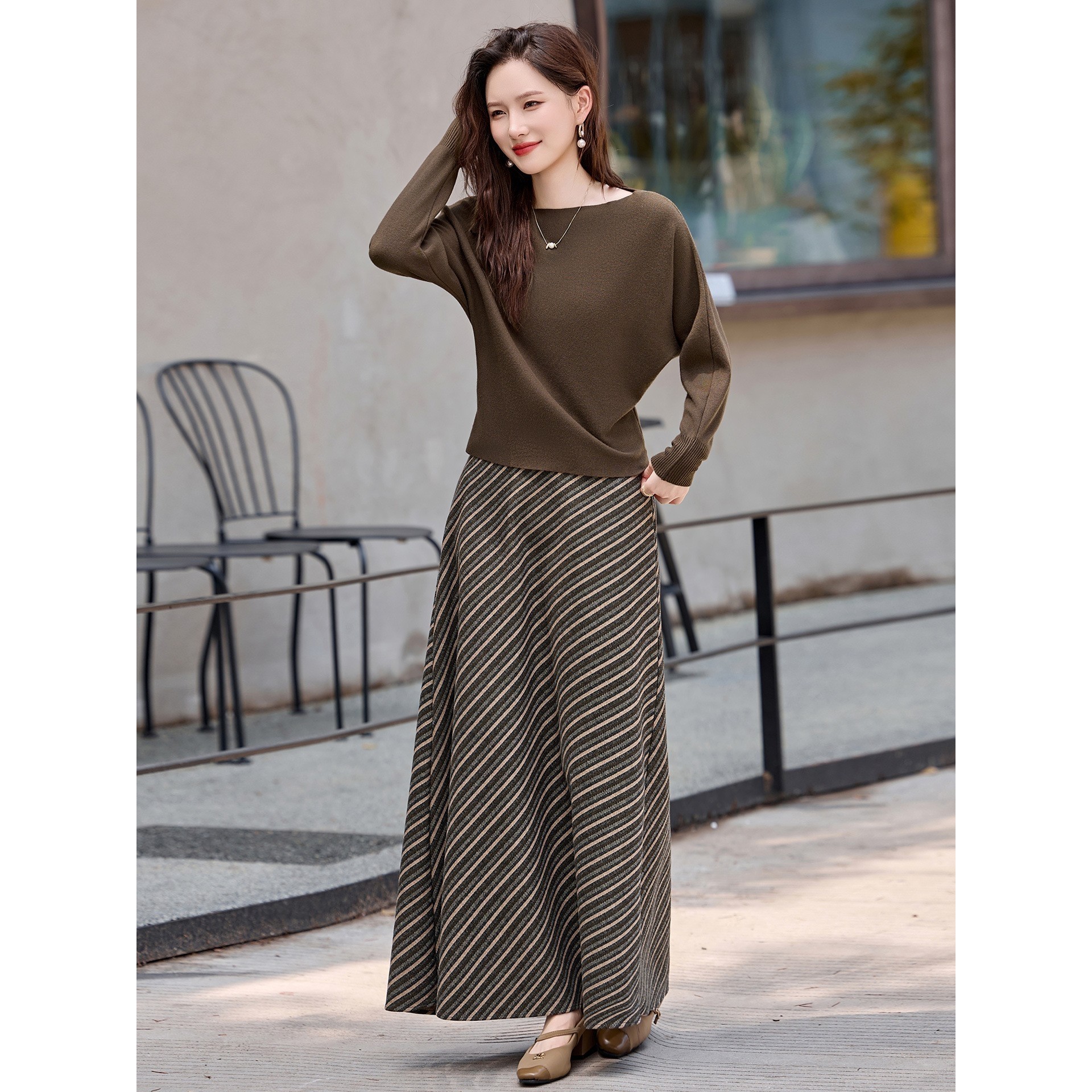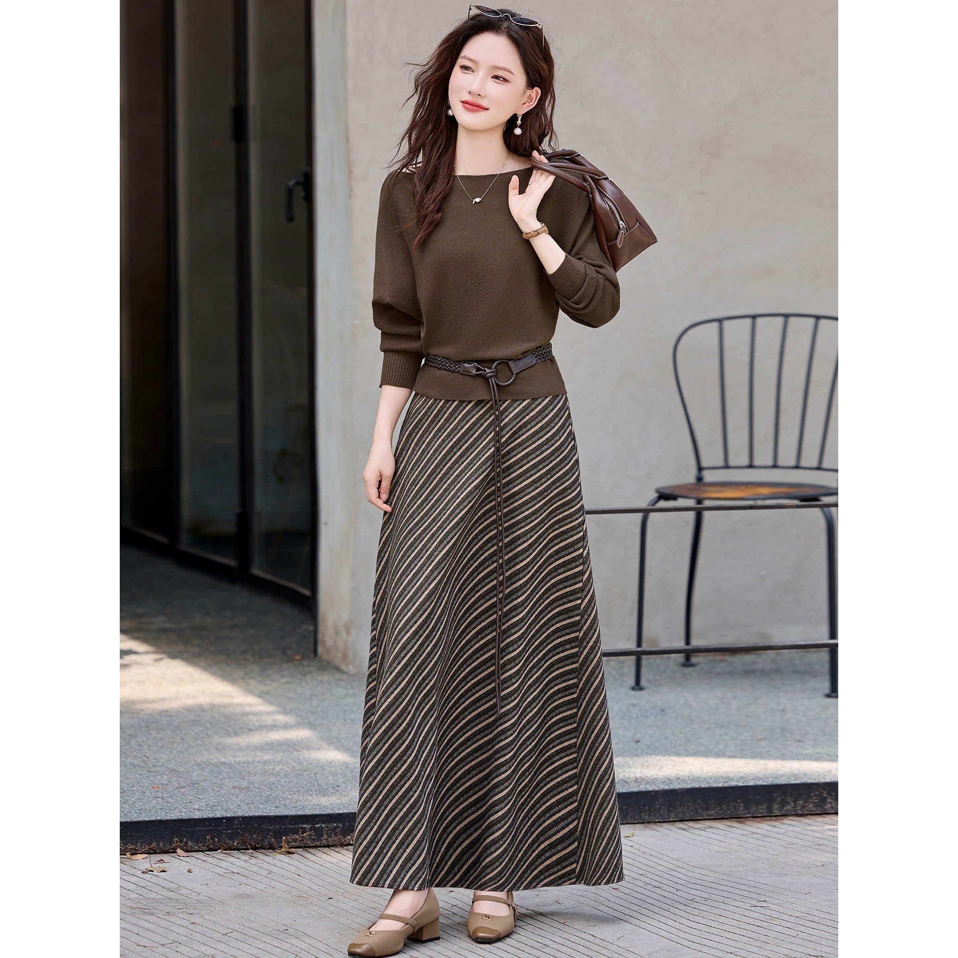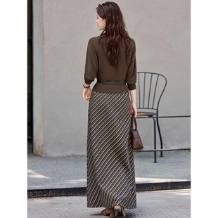 百搭设计感上衣 官网女装 时尚 新款 条纹半身裙 夏易菲套裙2025秋季