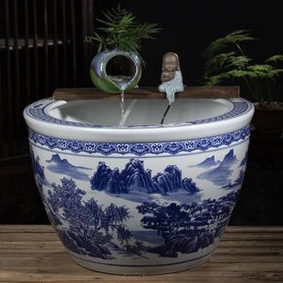 正品 大型陶瓷景流陶水喷泉鱼缸缸罐水循环造古法鱼客厅阳台落地大