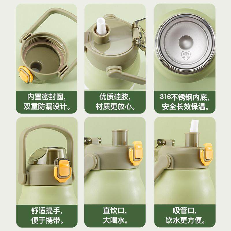保尔保温杯大容量男304不锈钢可携式 水杯子带吸管女士网红运动水