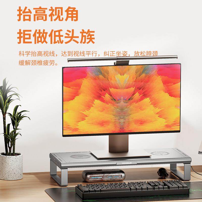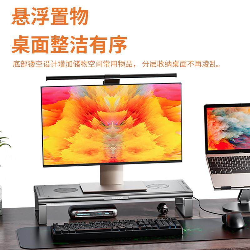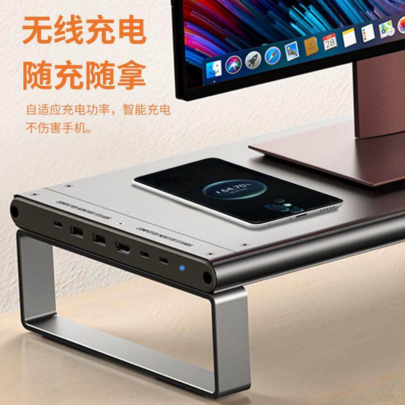 竞闪带拓展坞显示器增高电脑抬高底座支架手机充电一体机铝合金US