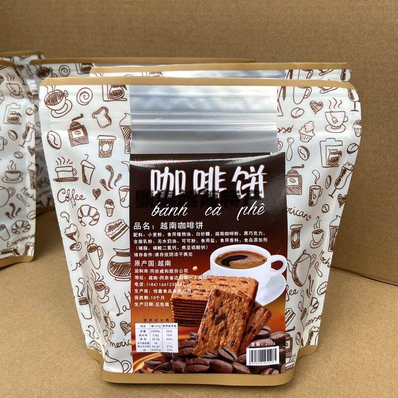 越南咖啡饼干薄脆焦糖饼干250g茶点休闲办公室零食小吃黑巧咖啡饼