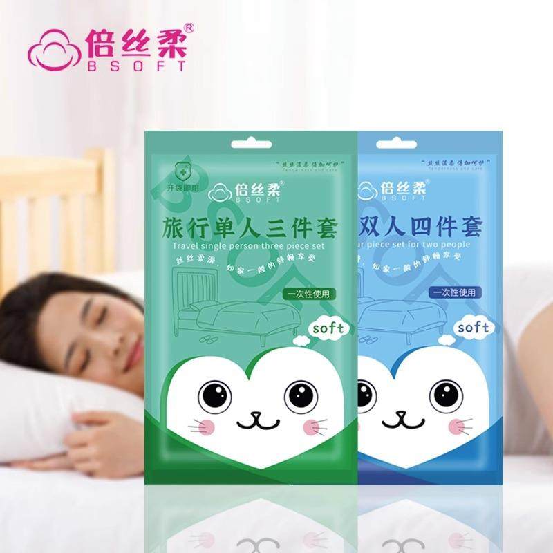 倍丝柔一次性床单四件套被罩枕套双人加厚旅游三件套隔脏睡袋