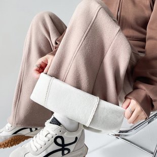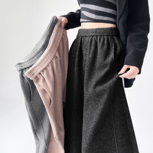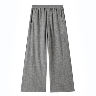 高级宽松慵懒垂感直筒休闲加绒阔腿裤 灰色糯米裤 子女秋冬2025新款