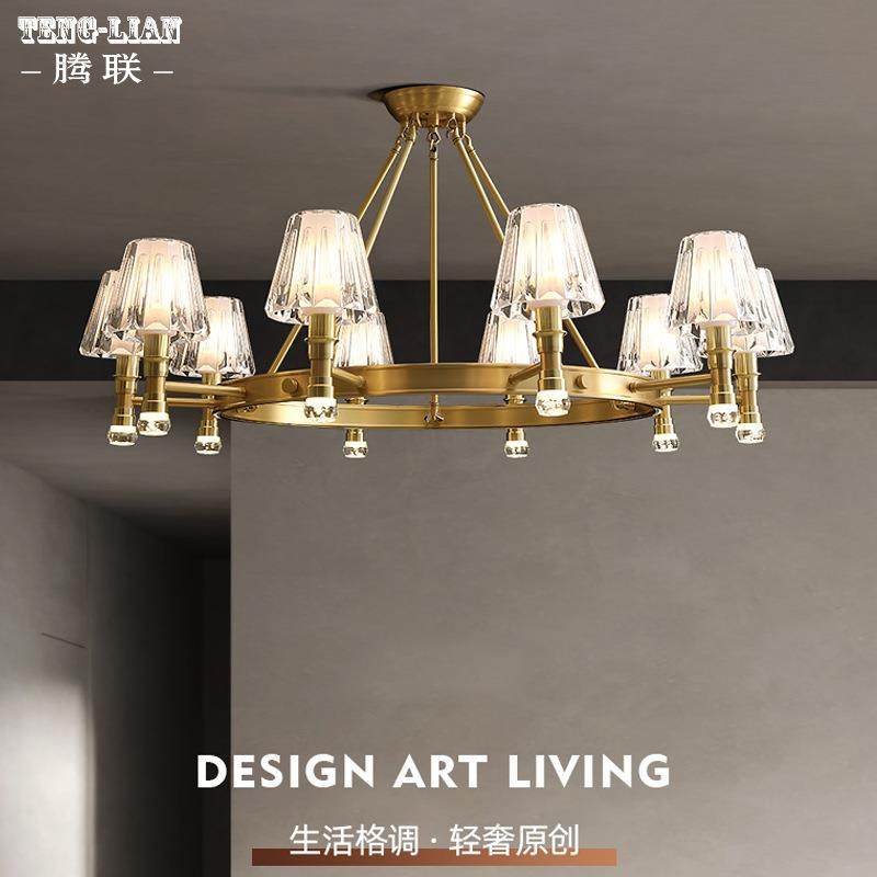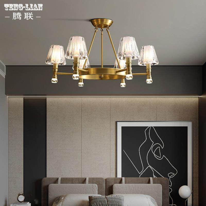 款 水晶全铜新吊灯约客简餐IRV厅卧室灯别墅大气房间大厅厅吊 美式
