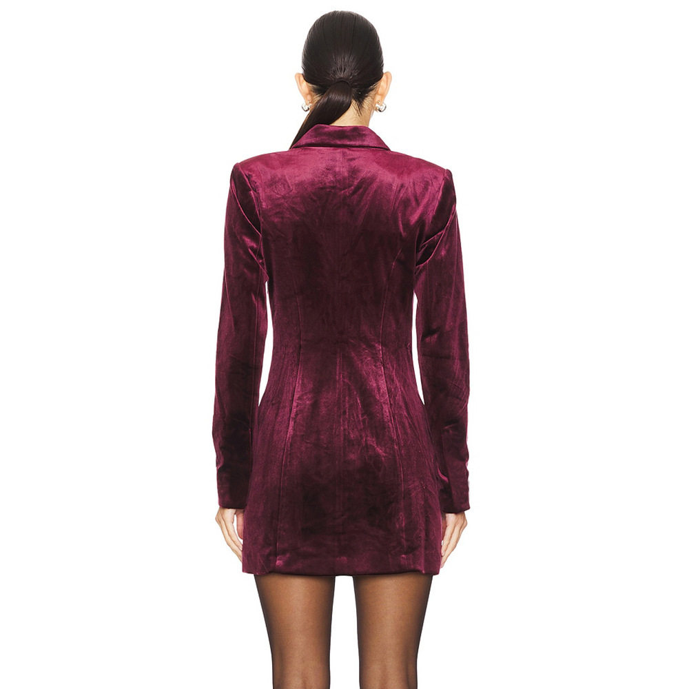 跨境欧美丝绒西装 百搭气质宽松连衣裙外套裙 裙女2025独立站新款
